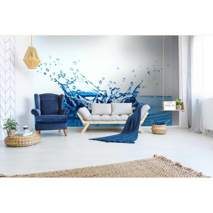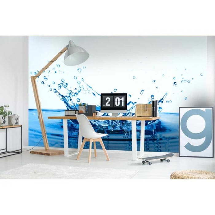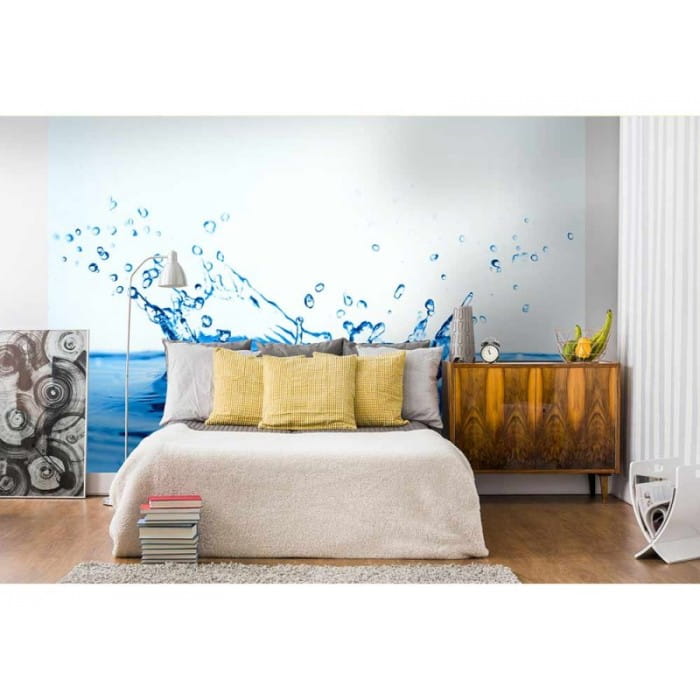 Fototapeta z motywem wody pomoże modnie zagospodarować ścianę nowoczesnego i minimalistycznego wnętrza. Druk, na którym uchwycono plusk czystej, niebieskiej wody na białym tle zapewni świetny efekt wizualny na ścianie w salonie, czy też sypialni. Delikatna, biało-niebieska kolorystyka fototapety rozjaśni i powiększy optycznie wnętrze. Flizelinowe podłoże fototapety zamaskuje drobne niedoskonałości ściany.