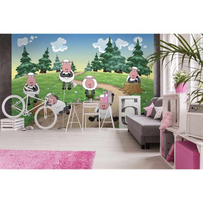 Fototapeta na flizelinie "Sheep" - owieczki urozmaici wystrój dziecięcego pokoju, z pewnością zachwyci zarówno dziewczynkę, jak i chłopca. Kolorowa ilustracja przedstawiająca urocze, białe owieczki na leśnej polanie sprawi, że w pokoju dziecka zapanuje przytulna atmosfera. W kompozycji przeważa dużo zieleni, która tworzy atmosferę spokoju.