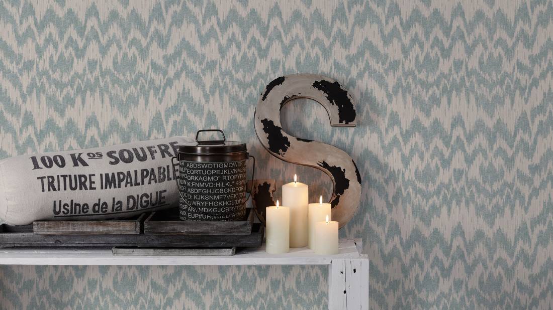 Tapeta ścienna producenta AS Creation z kolekcji Dream Again by Michalsky Living. Ten abstrakcyjny, zygzakowaty wzór inspirowany stylem etno w niepowtarzalny sposób udekoruje Twój salon, jadalnię, sypialnię, czy też przedpokój. Kompozycja bazuje na dwóch kolorach: delikatnym, kremowo-szarym i chłodnym turkusie, kolor kremowy jest niejednolity, bardzo delikatnie przecierany. Struktura tapety przypomina tkaninę z grubymi, wyczuwalnymi w dotyku, pionowymi prążkami, charakterystycznymi dla sztruksowego materiału, elegancji dodaje złoto-srebrna poświata, którą wzmocniono niebieskie elementy. Doskonale sprawdzi się jako dekoracja jednej ściany, w połączeniu z dopasowanymi do niej jednobarwnymi tłami. Podłoże tapety winylowe na flizelinie, zmywalne, nie blaknie pod wpływem działania promieni słonecznych. Nasz internetowy sklep z tapetami oferuje inne, nowoczesne i stylowe tapety ścienne. Znajdziesz u nas tapety do salonu, do jadalni, do sypialni, do przedpokoju, do kuchni i tapety łazienkowe. Zapraszamy na zakupy online i do naszego sklepu stacjonarnego.