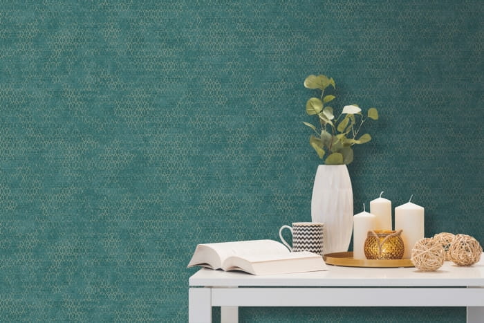 Tapeta ścienna francuskiego producenta Ugepa z kolekcji "Escapade", "Reflets" i "Couleurs". Powyższa tapeta pomoże zaaranżować modne i eleganckie wnętrze, w wyjątkowy sposób odmieni styl salonu, jadalni, sypialni, czy też przedpokoju. Delikatnie metalizowany, złoty, geometryczny wzór tworzy drobną i gęstą siatkę na powierzchni ciemnozielonego, matowego tła, tworzą ją malutkie sześciokąty i naniesione na nie romby. Kolor tła jest niejednolity, wyraźnie przecierany, jakby wyblakły, złoty wzór również miejscami traci kolor, całość wygląda na dekorację stylizowaną na starą, niosącą ślady zużycia. Delikatnie tłoczona struktura tapety przypomina tkaninę o płóciennym splocie. Tapeta z powodzeniem sprawdzi się jako samodzielna dekoracja w całym pomieszczeniu, jak i w połączeniu z innymi tapetami z kolekcji. Podłoże tapety flizelinowe, zmywalne, odporne na działanie promieni słonecznych. Nasz internetowy sklep z tapetami oferuje szeroki wybór asortymentu, który obejmuje: tapety nowoczesne, tapety klasyczne, tapety ekskluzywne, tapety młodzieżowe i tapety dziecięce. Znajdziesz u nas tapety do salonu, do jadalni, do sypialni, do przedpokoju, do kuchni i tapety łazienkowe. Zapraszamy na zakupy online i do naszego sklepu stacjonarnego.