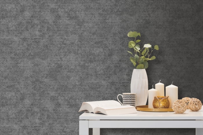 Tapeta ścienna francuskiego producenta Ugepa z kolekcji "Escapade" I "Couleurs". Powyższa tapeta pomoże zaaranżować modne i eleganckie wnętrze, w wyjątkowy sposób odmieni styl salonu, jadalni, sypialni, czy też przedpokoju. Delikatnie metalizowany, geometryczny, srebrny wzór układa się w drobną i gęstą siatkę na powierzchni ciemnoszarego, matowego tła, tworzą ją malutkie sześciokąty i naniesione na nie romby. Kolor tła jest niejednolity, wyraźnie przecierany, jakby wyblakły, srebrny wzór również miejscami traci kolor, całość wygląda na dekorację stylizowaną na starą, niosącą ślady zużycia. Delikatnie tłoczona struktura tapety przypomina tkaninę o płóciennym splocie. Tapeta doskonale sprawdzi się jako dekoracja na jednej ścianie, zestawiona z innymi tapetami z kolekcji, świetnie pasuje do pomieszczeń dużych i jasnych Podłoże tapety flizelinowe, zmywalne, odporne na działanie promieni słonecznych. Nasz internetowy sklep z tapetami oferuje szeroki wybór asortymentu, który obejmuje: tapety nowoczesne, tapety klasyczne, tapety ekskluzywne, tapety młodzieżowe i tapety dziecięce. Znajdziesz u nas tapety do salonu, do jadalni, do sypialni, do przedpokoju, do kuchni i tapety łazienkowe. Zapraszamy na zakupy online i do naszego sklepu stacjonarnego.