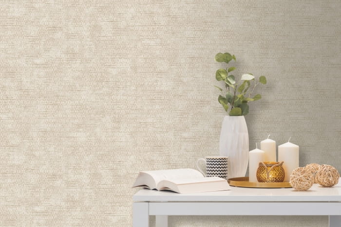 Tapeta ścienna francuskiego producenta Ugepa z kolekcji "Escapade", "Reflets" i "Couleurs". Powyższa tapeta pomoże zaaranżować modne i eleganckie wnętrze, w wyjątkowy sposób odmieni styl salonu, jadalni, sypialni, czy też przedpokoju. Delikatnie metalizowany, złoty, geometryczny wzór tworzy drobną i gęstą siatkę na powierzchni jasnobeżowego, matowego tła, tworzą ją malutkie sześciokąty i naniesione na nie romby. Kolor tła jest niejednolity, wyraźnie przecierany, jakby wyblakły, złoty wzór również miejscami traci kolor, całość wygląda na dekorację stylizowaną na starą, niosącą ślady zużycia. Delikatnie tłoczona struktura tapety przypomina tkaninę o płóciennym splocie. Tapeta z powodzeniem sprawdzi się jako samodzielna dekoracja w całym pomieszczeniu, jak i w połączeniu z innymi tapetami z kolekcji. Podłoże tapety flizelinowe, zmywalne, odporne na działanie promieni słonecznych. Nasz internetowy sklep z tapetami oferuje szeroki wybór asortymentu, który obejmuje: tapety nowoczesne, tapety klasyczne, tapety ekskluzywne, tapety młodzieżowe i tapety dziecięce. Znajdziesz u nas tapety do salonu, do jadalni, do sypialni, do przedpokoju, do kuchni i tapety łazienkowe. Zapraszamy na zakupy online i do naszego sklepu stacjonarnego.