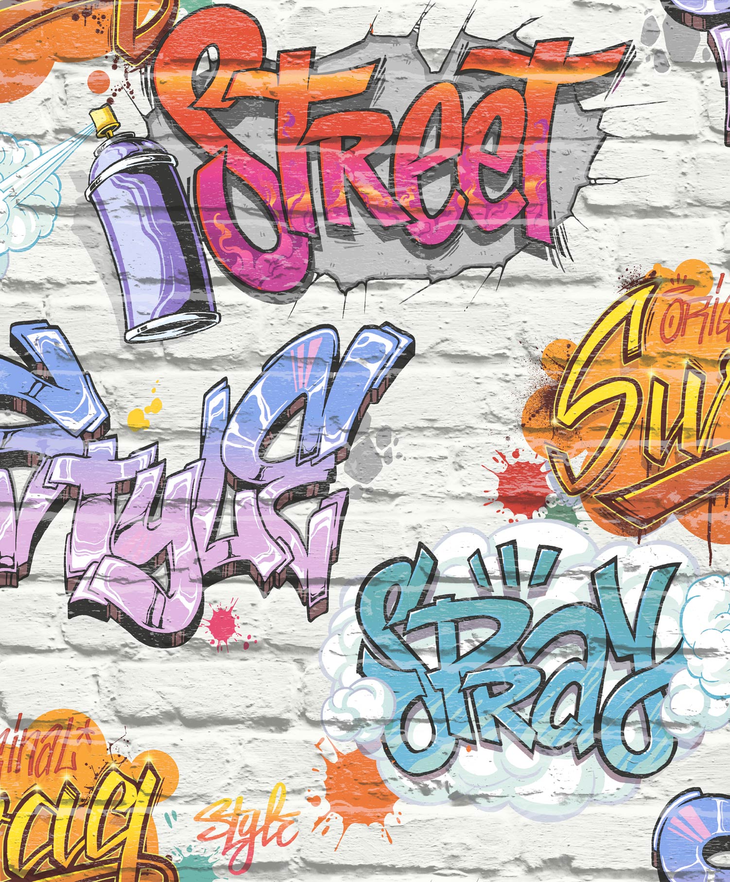 Papierowa tapeta ścienna, producenta Ugepa z kolekcji Freestyle. Tapeta imitująca ceglany mur, ożywiony kolorowym graffiti. Ubarwienie cegły to w głównej mierze biel przełamana szarością, napisy nakreślono w nasyconych odcieniach różu, pomarańczowego, żółci, niebieskiego zieleni, fioletu oraz szarości bieli. Dynamiczna i pełna wyrazu ozdoba, która idealnie wpasuje się do młodzieżowego wnętrza. Świetnie sprawdzi się jako ozdoba jednej ściany, czy też w formie pojedynczego panelu ściennego, w połączeniu z tapetą nr: 102539 i L33505. Struktura tapety gładka, matowa, miejscami z delikatną poświatą. Produkt odporny na zmywanie i działanie promieni słonecznych.