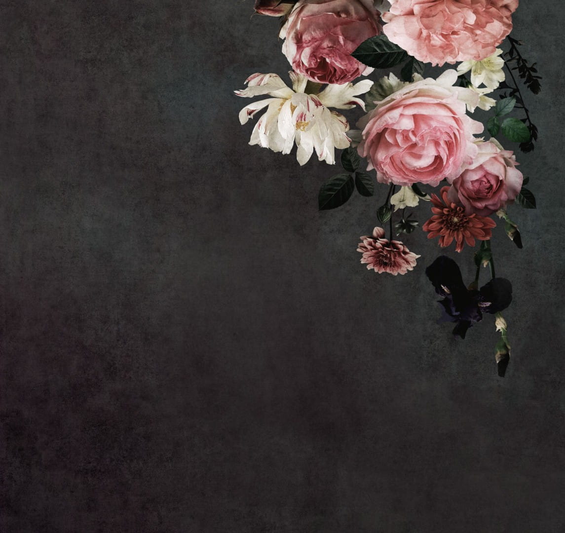 Prezentowana fototapeta ścienna emanuje elegancją i tajemniczym urokiem, łącząc nasycone, ciemne tło z subtelnością kwiatowej kompozycji. Na czarnym, teksturowanym tle wyróżniają się realistycznie przedstawione kwiaty w odcieniach różu, bieli i delikatnych czerwieni. Kompozycja kwiatów w górnym rogu nadaje tapecie elegancki i nieco asymetryczny charakter, co harmonijnie wpisuje się w minimalistyczny styl. Kwiaty zostały przedstawione z niezwykłą dbałością o detale, a ich pastelowe odcienie kontrastują z ciemnym tłem, co tworzy efekt głębi i trójwymiarowości. Liście w stonowanej zieleni dopełniają całości, nadając tapecie naturalnego i harmonijnego wyglądu.