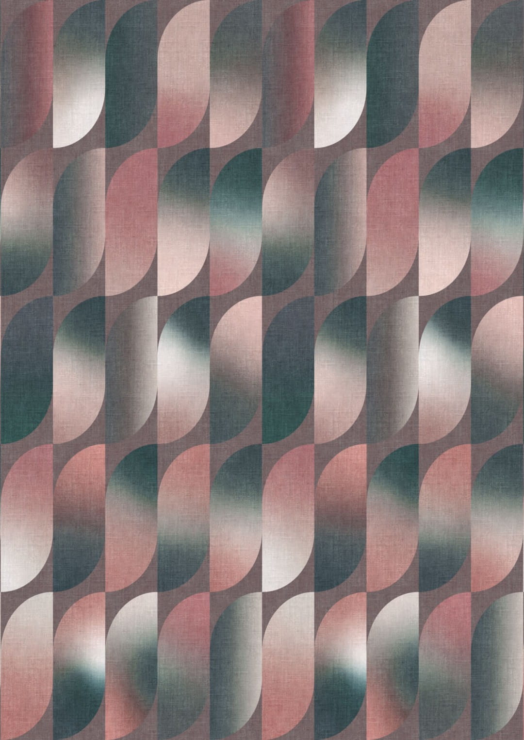 Kolorystyka prezentowanego muralu ściennego opiera się na stonowanych, ale wyrazistych barwach, które harmonijnie łączą odcienie przydymionego różu, szarości, ciemnej zieleni oraz ciepłego beżu i brązu. Subtelne przejścia tonalne między barwami nadają wzorowi elegancji, jednocześnie podkreślając jego nowoczesny i wyrafinowany charakter.