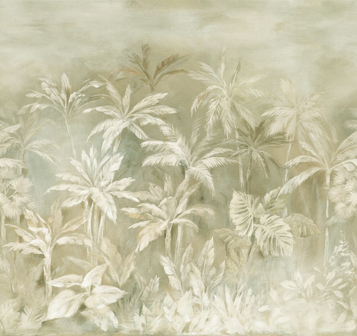 Kolorystyka muralu utrzymana jest w delikatnych, naturalnych odcieniach. Dominują subtelne beże, kremy oraz pastelowe akcenty zieleni, które tworzą harmonijną i łagodną kompozycję.