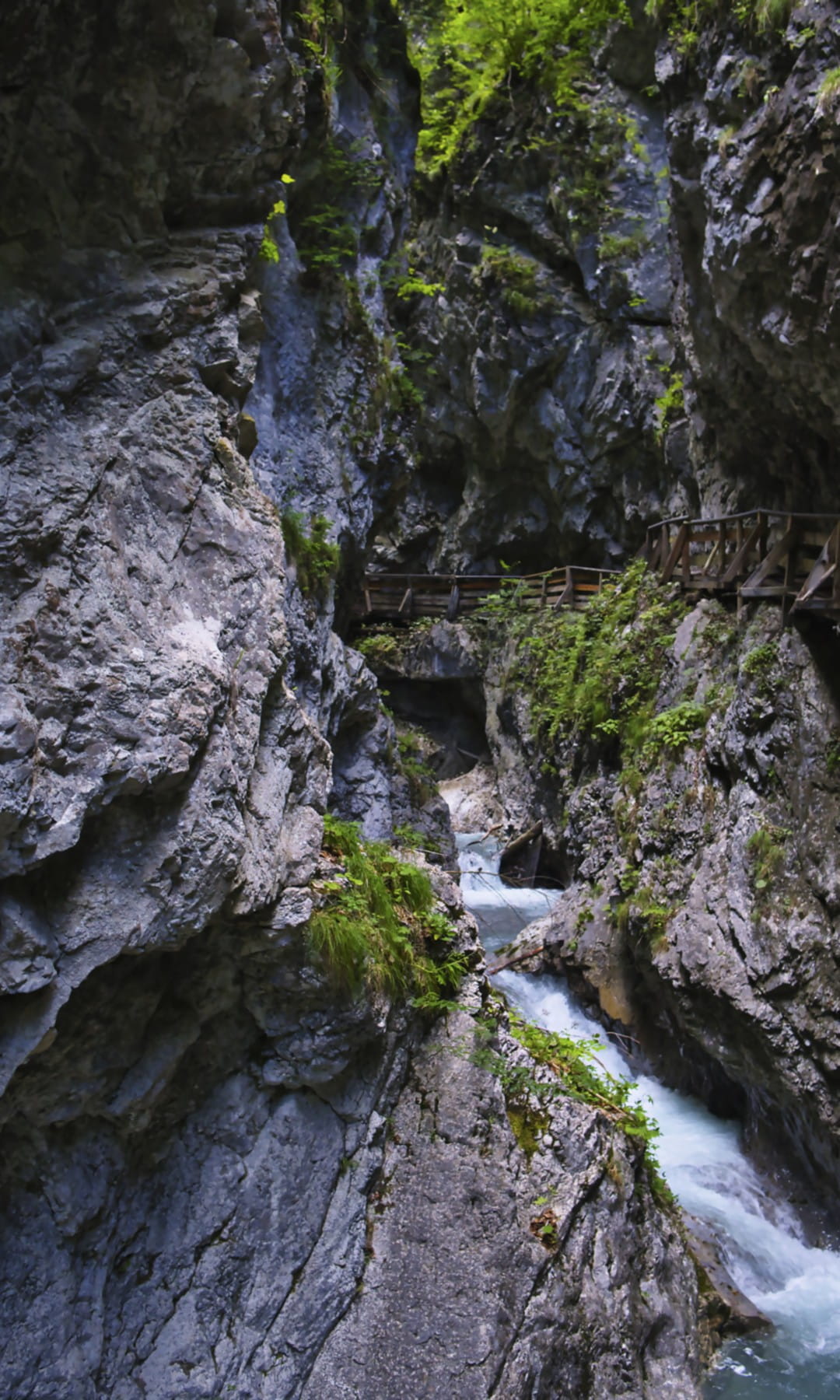 Prezentowana fototapeta ścienna z kolekcji "Magic Walls" od producenta Rasch przenosi nas w serce surowego, górskiego krajobrazu, gdzie wąski strumień wody przepływa pomiędzy potężnymi, skalistymi ścianami. Detale wzoru podkreślają teksturę skał – ich nierówności, porosty i naturalne ślady erozji, które świadczą o działaniu natury na przestrzeni lat. Miękki, krystaliczny strumień wody przepływający przez szczelinę dodaje dynamiki i równoważy monumentalność otaczających skał. Cienie i światło subtelnie akcentują detale, tworząc efekt głębi i trójwymiarowości.