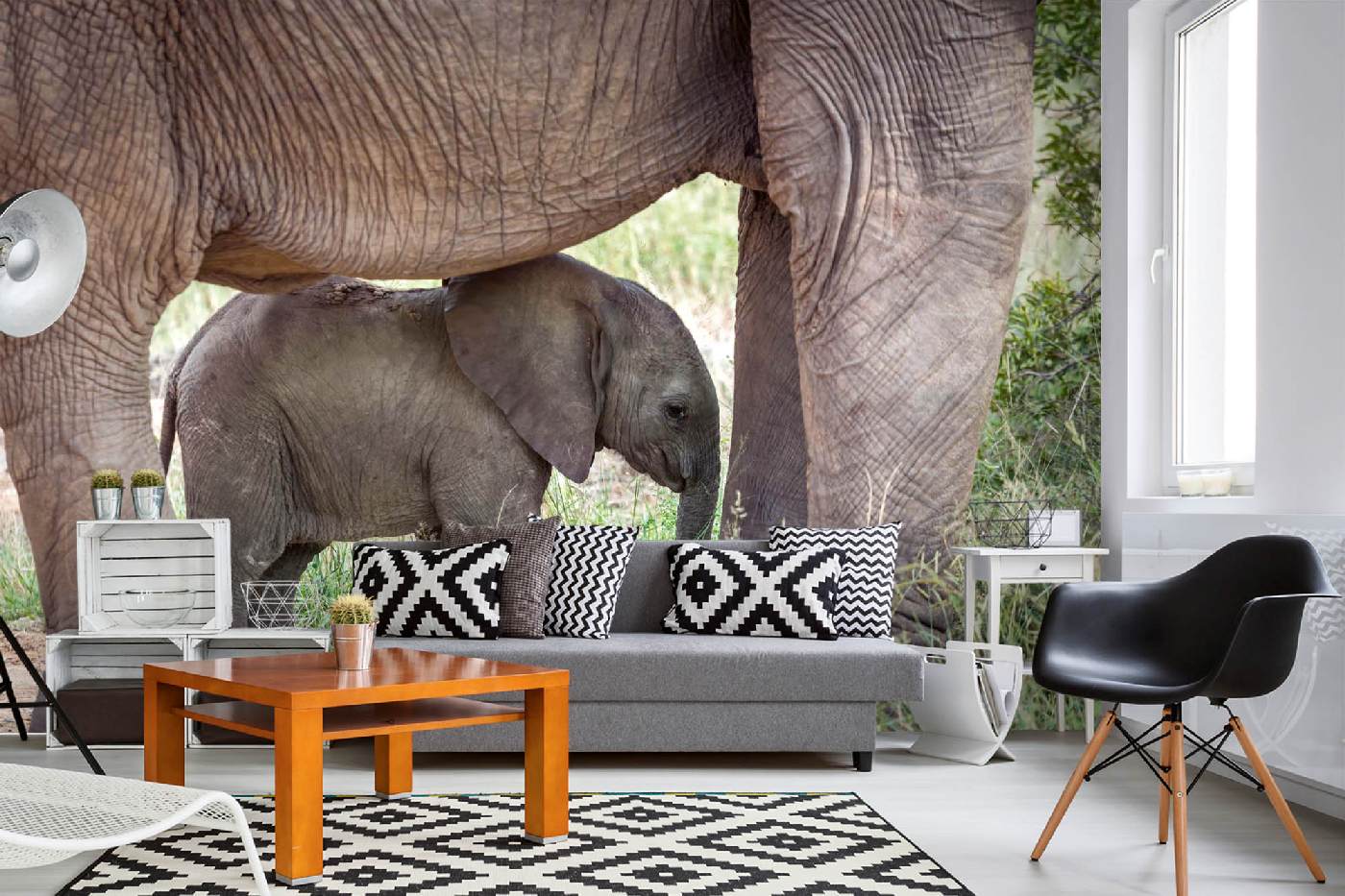 Fototapeta na Flizelinie MS-5-0480 Matka z małym słoniem 375 x 250 cm