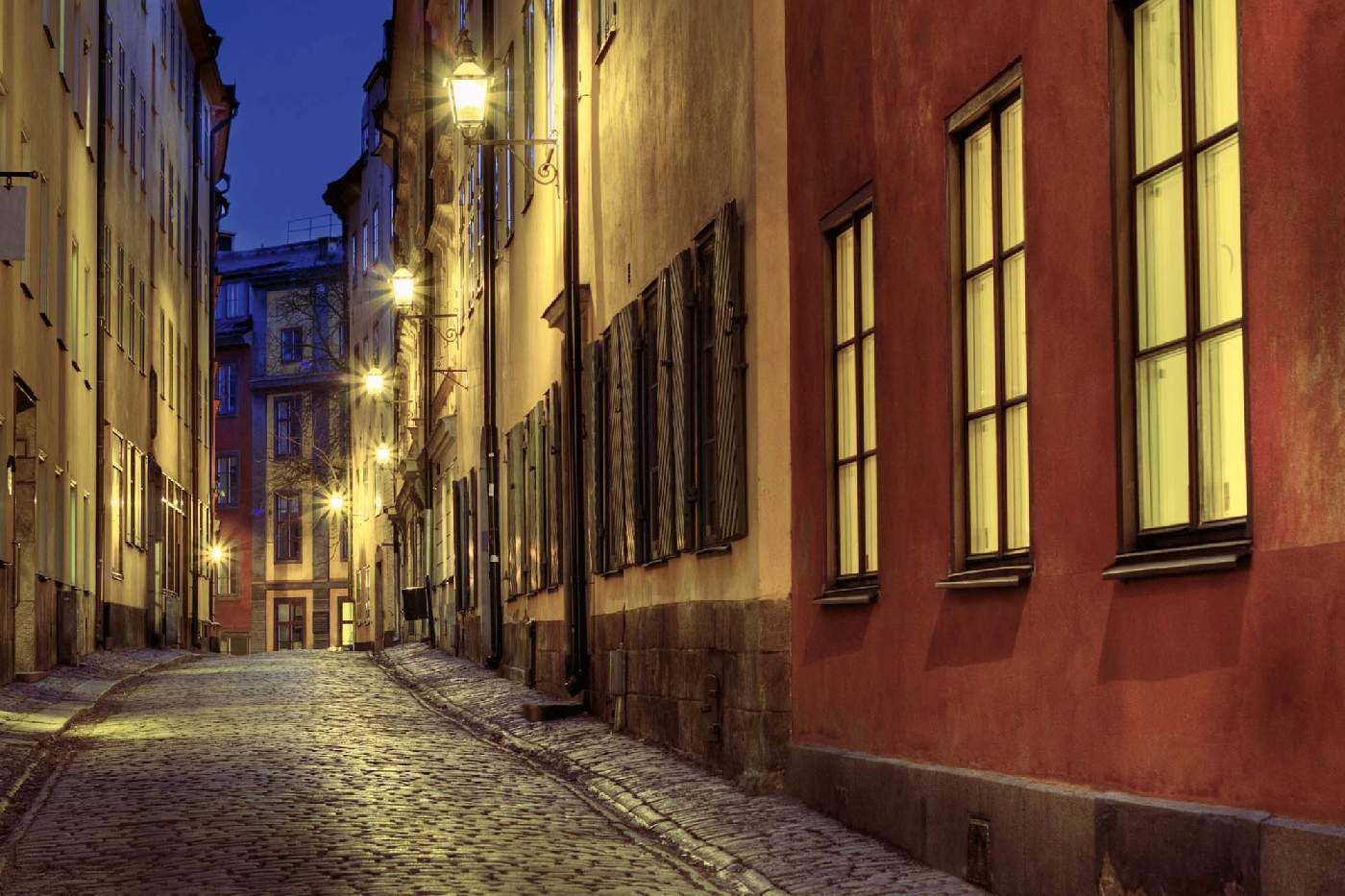 Fototapeta na Flizelinie MS-5-0715 Stara oświetlona ulica 375 x 250 cm
