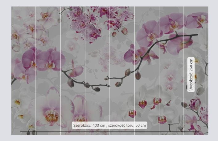 | Ilość elementów Fototapety | 8 pasów, każdy o szerokości 50 cm |