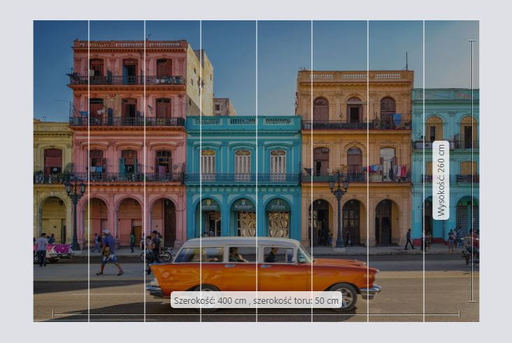 | Ilość elementów Fototapety | 8 pasów, każdy o szerokości 50 cm |
