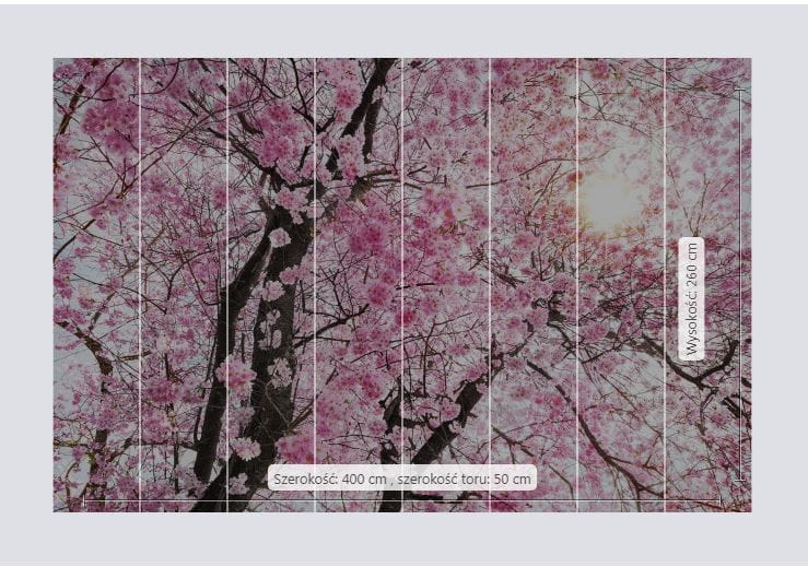 | Ilość elementów Fototapety | 8 pasów, każdy o szerokości 50 cm |