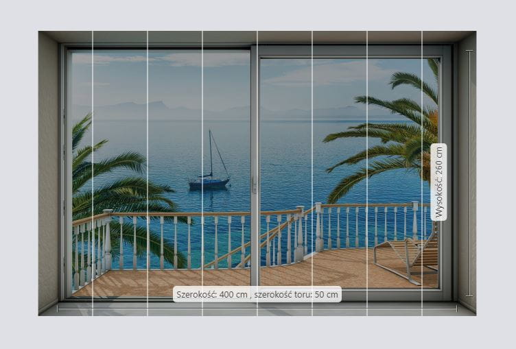 | Ilość elementów Fototapety | 8 pasów, każdy o szerokości 50 cm |