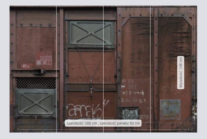 | Ilość elementów Fototapety | 4 pasy każdy o szerokości 92 cm i wysokości 248 cm |
