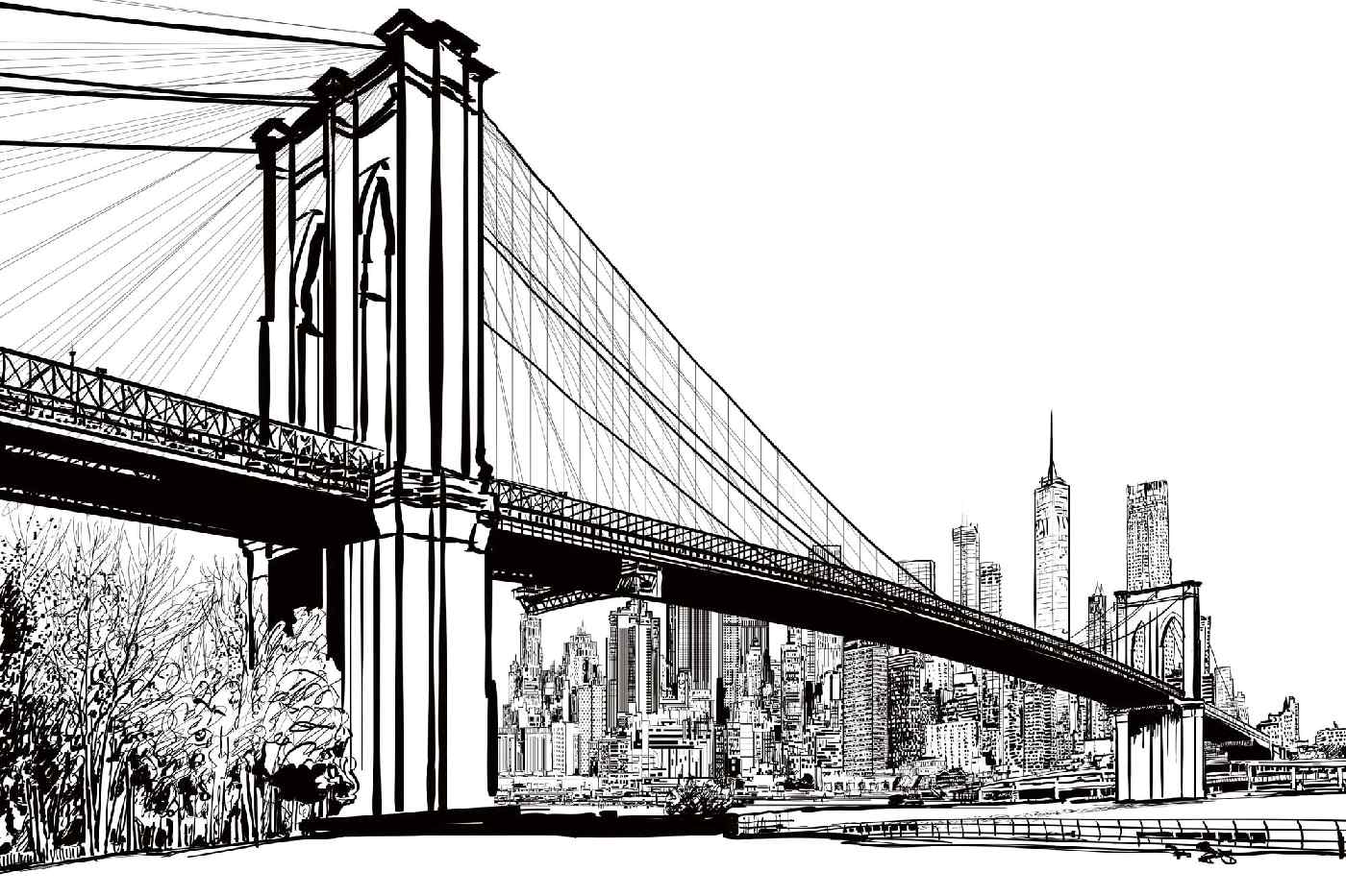 Fototapeta na flizelinie MS-5-2965 Ilustracja Mostu Brooklińskiego 375 x 250 cm