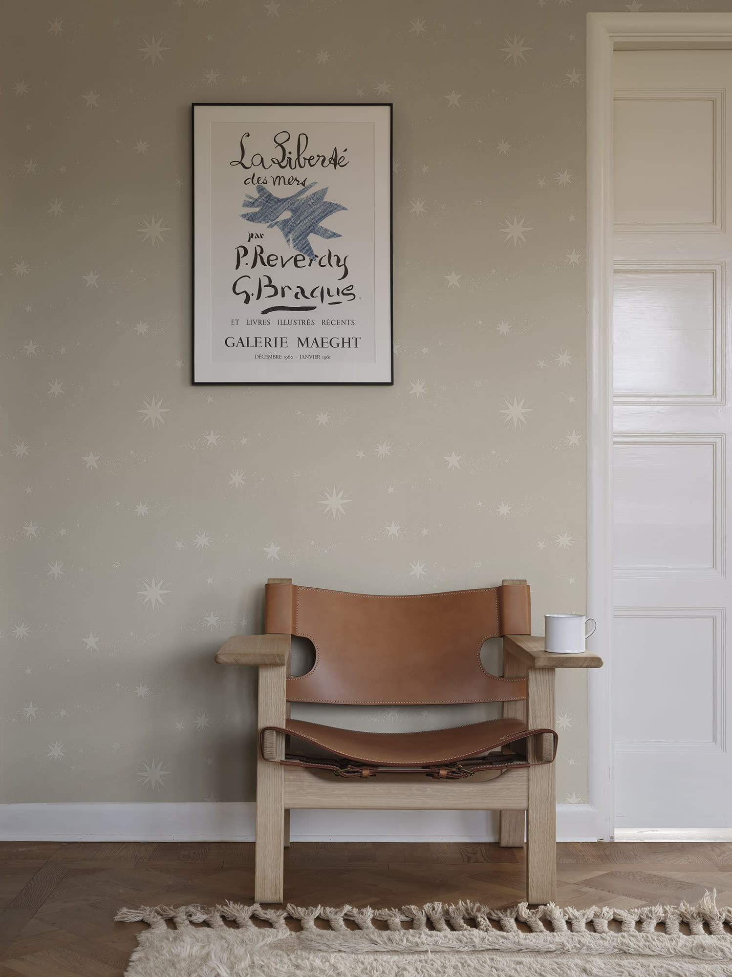 Ekskluzywny panel ścienny z kolekcji "Tidlosa", zaprojektowany przez Johannę Bradford dla szwedzkiego producenta oklein ściennych Sandberg. "Gillis" to piękne, ręcznie malowane gwiazdy, roztańczone na papierze niczym gwiazdy na nocnym niebie. Delikatna, jasnobeżowa kolorystyka sprawia, że całość prezentuje się nienachalnie i lekko. Projekt występuje w pięciu wersjach kolorystycznych. Pierwotnie miał służyć jako "marzycielska" tapeta sufitowa, jednak bez wątpienia równie pięknie będzie prezentować się też na ścianie. W wyjątkowy sposób udekoruje sypialnię, pokój młodzieżowy, czy też dziecięcy tworząc we wnętrzu przytulną i odprężającą atmosferę. Tapeta flizelinowa, odporna na zmywanie w stopniu dobrym, dzięki czemu można ją bardzo delikatnie przecierać ściereczką.