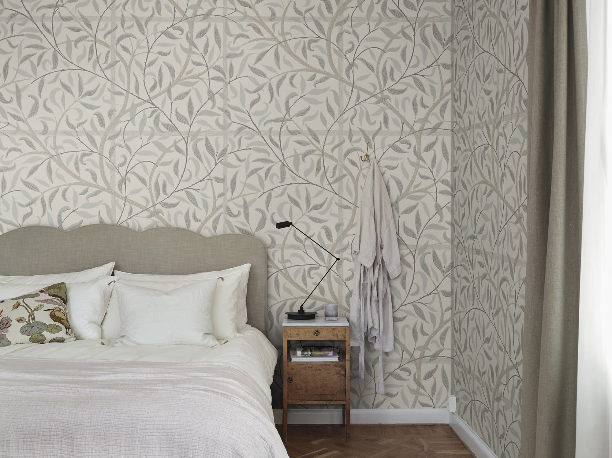 Ekskluzywny panel ścienny z kolekcji "Tidlosa", producenta oklein ściennych Sandberg. "Emmie" to urocza krata, pokryta smukłymi pnączami liści, które pięknie obejmą pomieszczenie. Kompozycja utrzymana w zgaszonych, zszarzałych zieleniach, na delikatnym, jasnobeżowym tle. Dekoracja, która idealnie odnajdzie się we wnętrzach klasycznych, urządzonych w stylu vintage i cottage. W wyjątkowy sposób odmieni styl salonu, jadalni, sypialni, przedpokoju, gabinetu a także młodzieżowego a nawet pokoju dziecięcego, nadając im wyjątkowego stylu i niezwykle ciepłego klimatu. Tapeta flizelinowa, odporna na zmywanie w stopniu dobrym, dzięki czemu można ją bardzo delikatnie przecierać ściereczką.