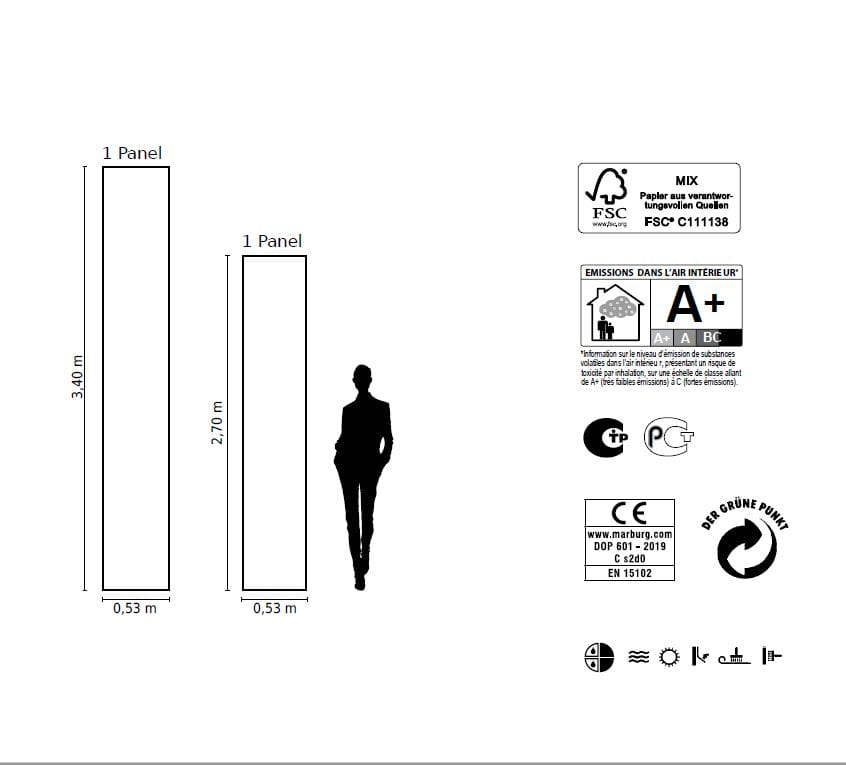 Rozmiar wys: 3,40 x szer: 2,12 m. Murale można ze sobą łączyć tworząc dekorację na całej powierzchni ściany