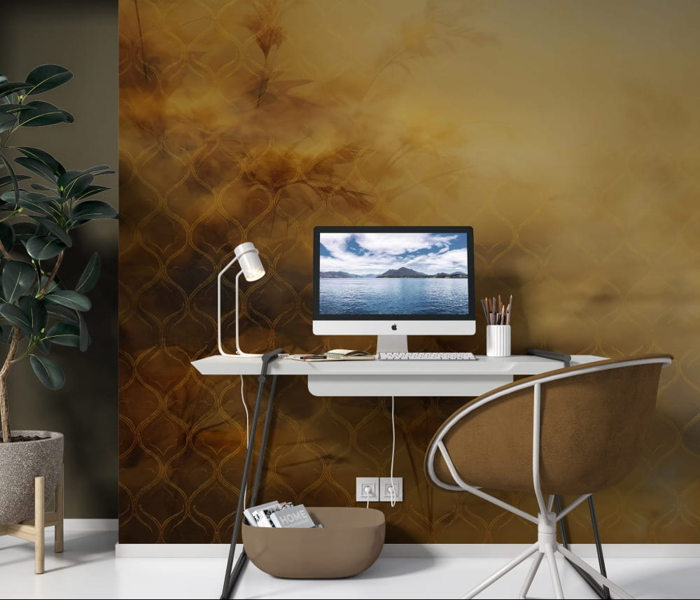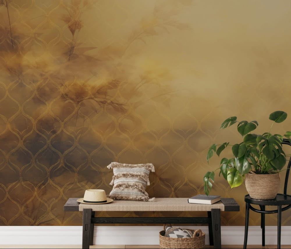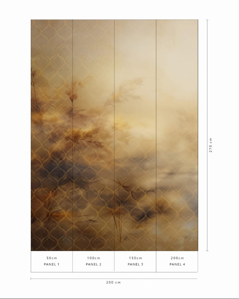 Rozmiar: 200 x 270 cm Mural składa się z 4 paneli o szerokości 50 cm Rodzaj Podłoża metaliczny 220g (złoty)