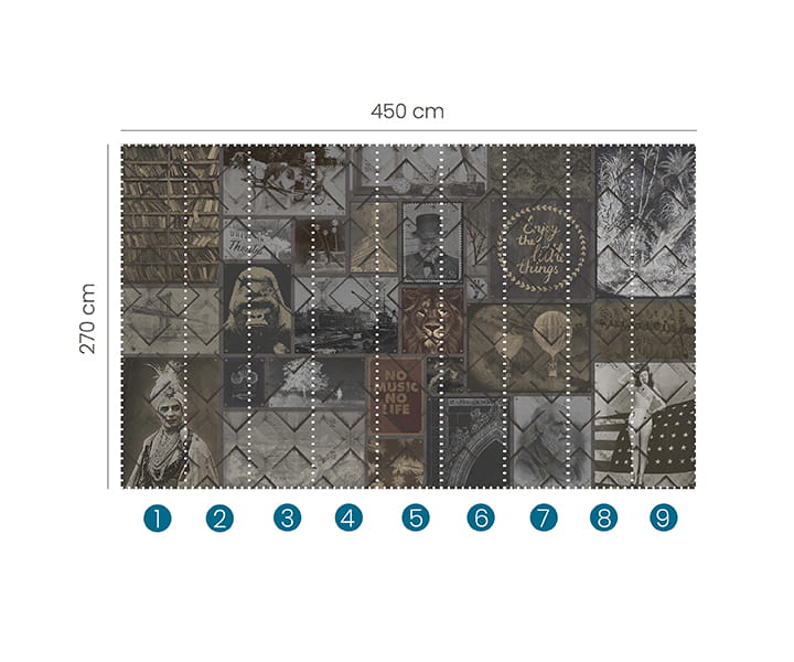 Rozmiar: 450 x 270 cm Mural składa się z 9 paneli o szerokości 50 cm Rodzaj Podłoża winyl na flizelinie 155gr