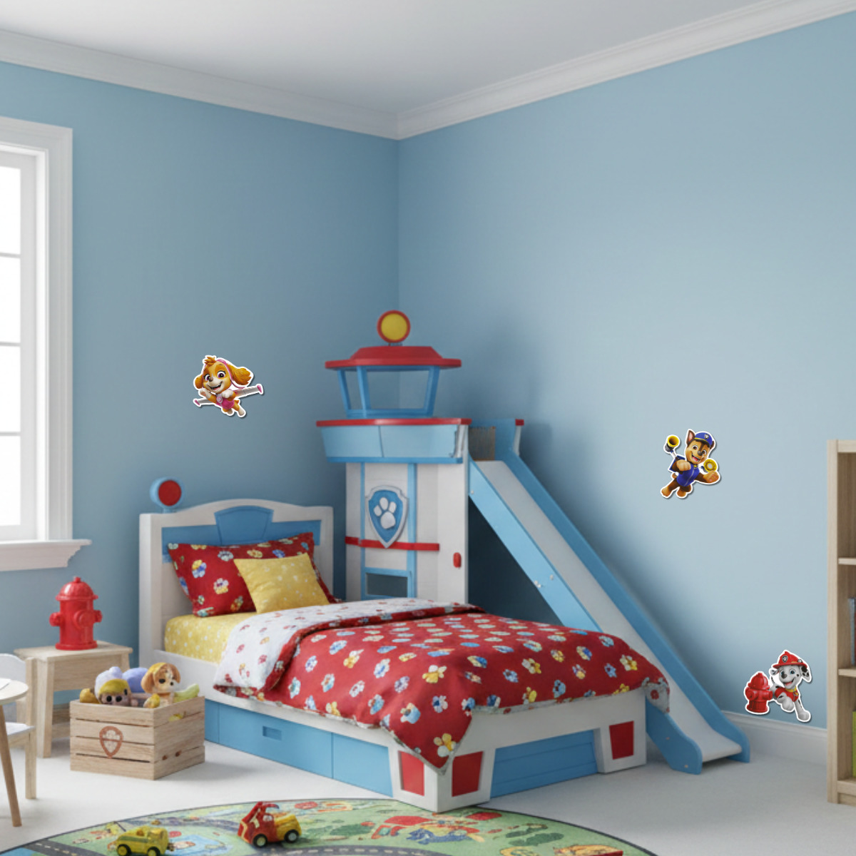 Piękne, kolorowe dekoracje z wizerunkami głównych bohaterów bajki Psi Patrol, dzięki którym pokój dziecka stanie się przytulny i wyjątkowy, a dziecko chętnie będzie spędzało w nim czas.