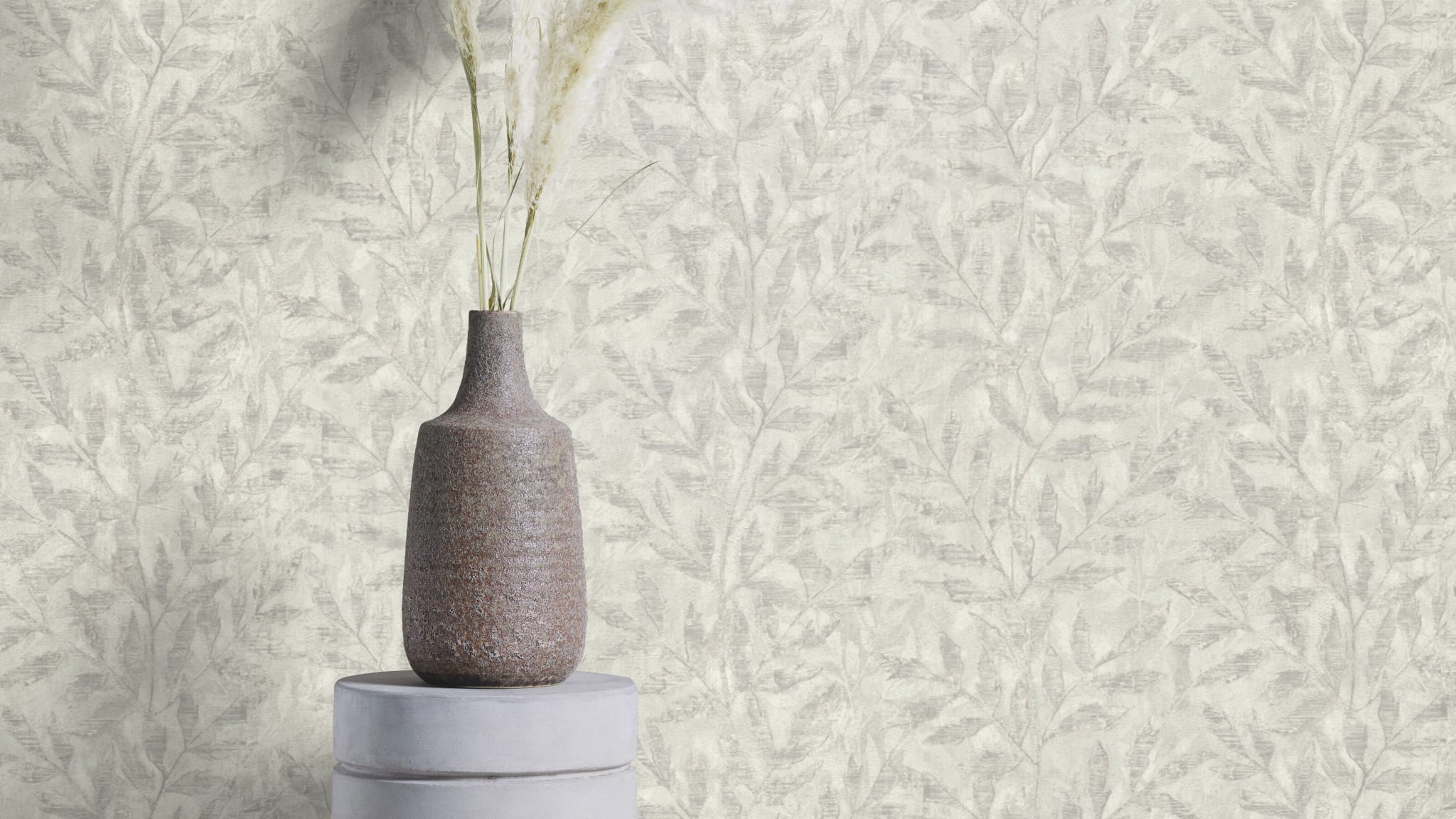 Tapeta z abstrakcyjnym połączeniem elementów natury z przemysłem, charakteryzuje się nowoczesnym i oryginalnym designem. Motyw liści gęsto umieszczonych na tle metalowej blachy to doskonała kompozycja, łącząca w sobie naturalność z fabrycznym klimatem. Dzięki swojej teksturowanej strukturze oraz metalicznemu wykończeniu nada pomieszczeniu loftowej elegancji. Zaprezentowane na tapecie szare liście na tle jasno szarej blachy, zostały wzbogacone subtelnie rozmieszczonymi opiłkami srebra, czyniąc ją jeszcze bardziej wyjątkową.