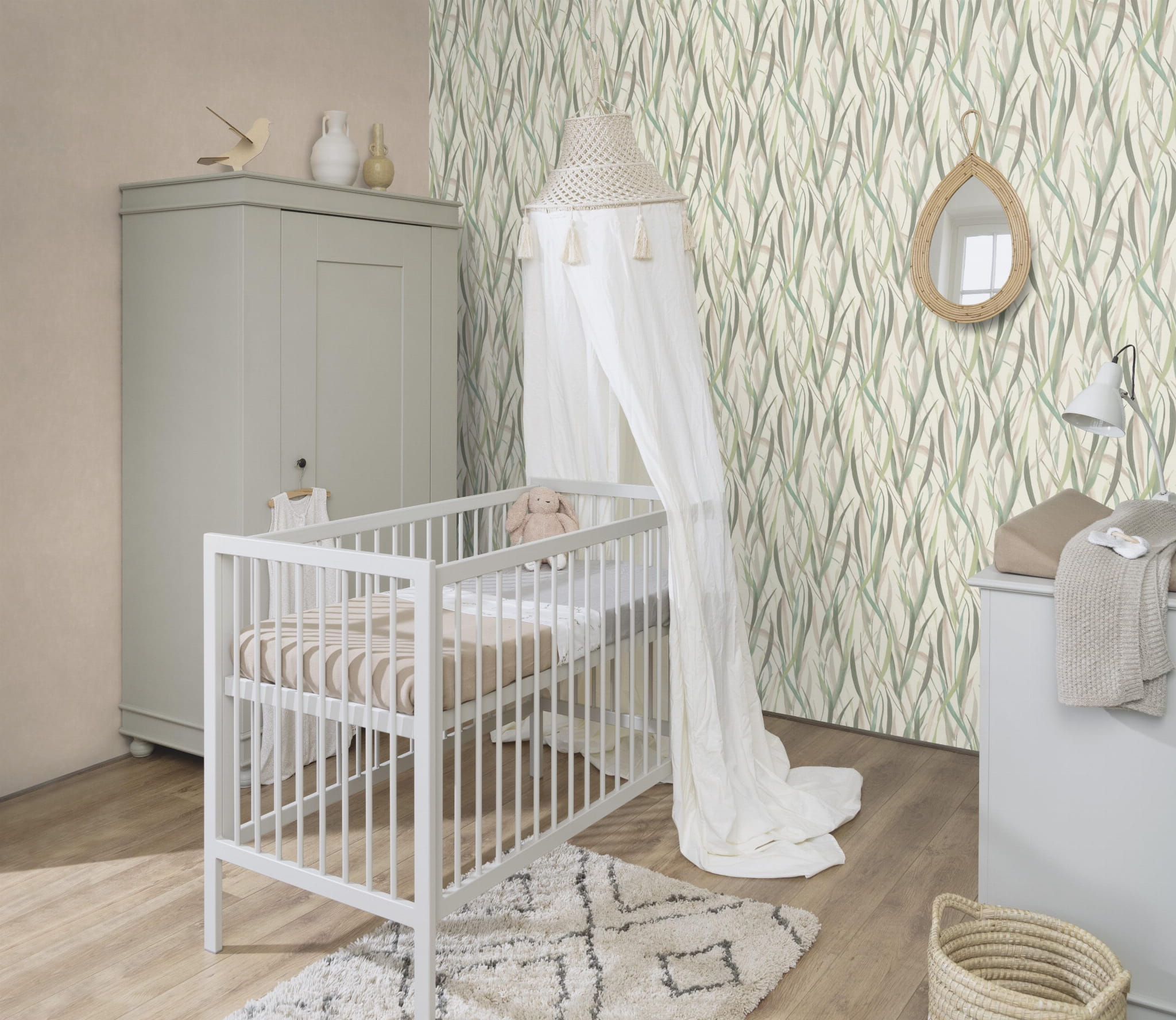 Tapeta ścienna z wyjątkowym motywem natury, przedstawiającym gęsto rozmieszczone i pofalowane liście wysokiej trawy. Wzór tworzy na białym tle efektywną iluzję żywych źdźbeł trawy, w różnych odcieniach beżu oraz zielnego. Listki układają się w artystyczną kompozycję, przypominającą rozkołysaną przez wiatr, trawiastą łąkę. Cała dekoracja jest wyrazem kreatywności i lekkości, tworząc pogodną w pomieszczeniu atmosferę. Dyskretny charakter tapety, dodaje jej atrakcyjności i wdzięku. Struktura tapety jest jednolita, imitująca delikatną tekstylną powierzchnię. Znajdzie zastosowanie w wystroju pomieszczeń, zaaranżowanych, zarówno w stylu klasycznym, jak i nowoczesnym. Matowe wykończenie stanowi dodatkową dekorację, dodając całej kompozycji uroku i elegancji. Sprawdzi się, jako samodzielna dekoracja ścian lub zestawiona z szeroką gamą wzorów z kolekcji Paraiso, stworzy wyjątkowy wystrój do sypialni, jadalni, salonu, pokoju młodzieżowego, nadając im niepowtarzalny i pełen energii charakter. Struktura tapety, jest twarda i lekko chropowata na całej powierzchni, z nieznacznie wyczuwalną pod palcami fakturą. Tapeta winylowa na flizelinie, charakteryzuje się bardzo dobrą odpornością na zmywanie, wierzch można przemywać wilgotną ściereczką.