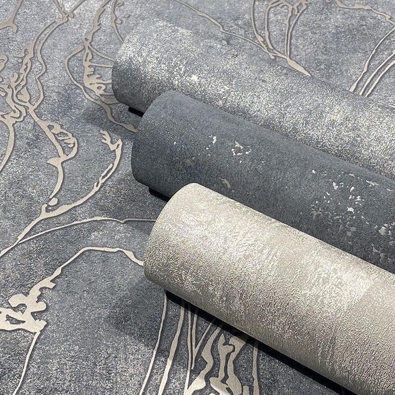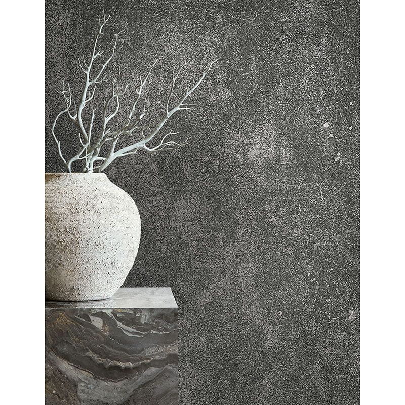 Powierzchnia tapety jest matowa w odcieniach czerni z elementami błyszczących przetarć oraz refleksów w kolorze srebra.