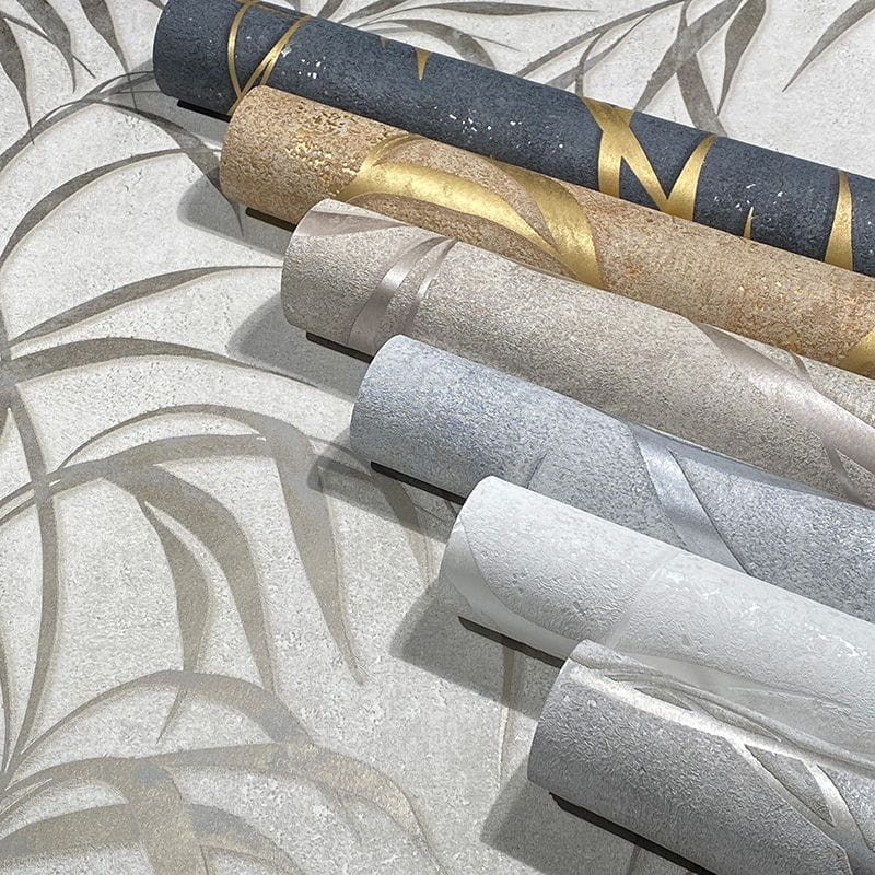 Główny motyw liścia jest w kolorze połyskującym – starego złota. Pozostała powierzchnia tapety jest matowa, w odcieniach szarego i brązowego. Całość wzbogacają delikatne i błyszczące przetarcia w kolorach miedzianym oraz starego złota.