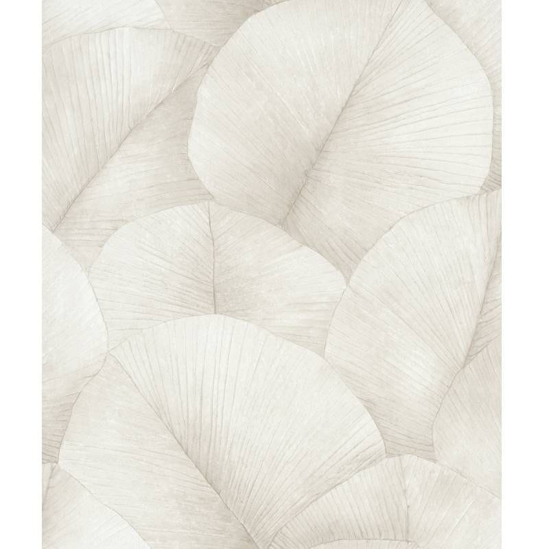 Ekskluzywna tapeta ścienna z kolekcji „Kumano”, producenta Marburg. Nowoczesna tapeta ścienna z prostym, minimalistycznym motywem, przedstawiającym duże liście, które wypełniają całą powierzchnię tapety. Kompozycja utrzymana w delikatnej kolorystyce, z przewagą jasnego, szarego beżu, miejscami przechodzącego w biel. Żyłki i kontury liści zostały podkreślone perłowym połyskiem, przez co tapeta pięknie się mieni a wzór sprawia wrażenie trójwymiarowego. W wyjątkowy sposób odmieni styl salonu, jadalni, sypialni, czy też przedpokoju, sprawiając, że wnętrze zyska eleganckiego i przytulnego charakteru. Struktura tapety jest delikatnie tłoczna, wyczuwalnie chropowata w dotyku. Podłoże tapety flizelinowe, zmywalne – odporne na szorowanie, dzięki czemu tapetę łatwo będzie utrzymać w czystości.