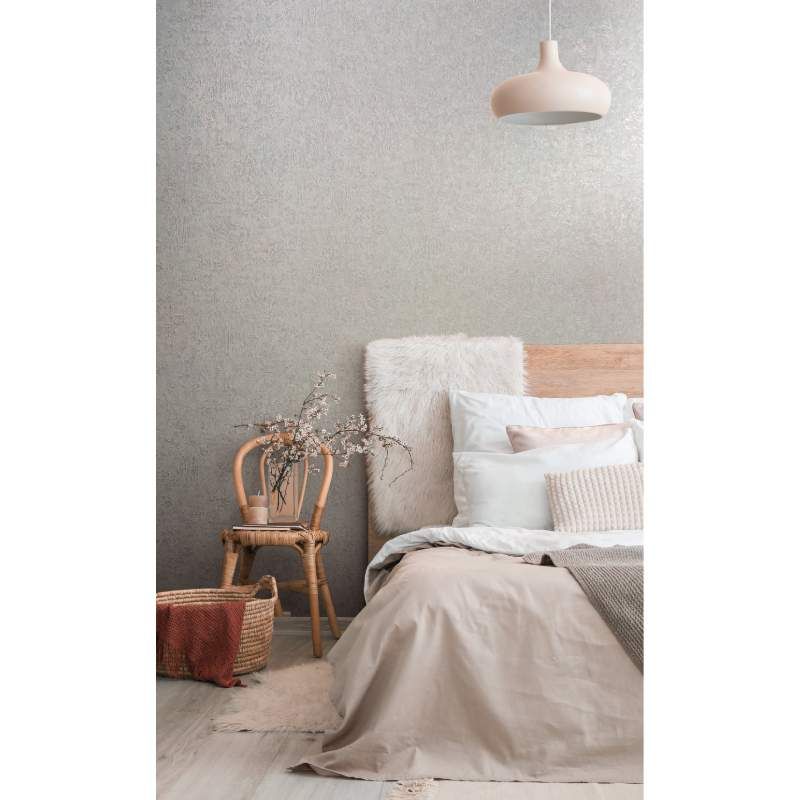 Ekskluzywna tapeta ścienna z kolekcji „Kumano”, producenta Marburg. Tapeta o delikatnie tłoczonej i wyczuwalnie chropowatej w dotyku strukturze. Imituje dekoracyjny tynk ścienny w delikatnym odcieniu jasnej szarości, z subtelnie połyskującą, perłową przecierką. Z powodzeniem może stanowić samodzielną dekorację w całym pomieszczeniu, lub tworzyć modne zestawienie z innymi tapetami z kolekcji. Nadaje się do każdego pomieszczenia i współgra z wieloma stylami aranżacji wnętrz. Podłoże tapety flizelinowe, zmywalne – odporne na szorowanie, dzięki czemu tapetę łatwo będzie utrzymać w czystości.
