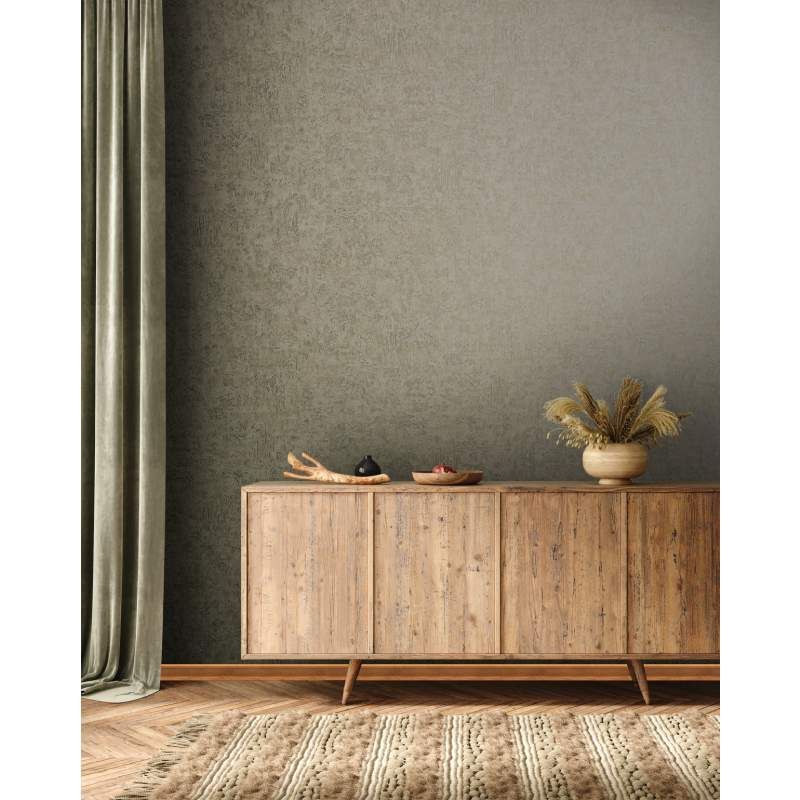 Ekskluzywna tapeta ścienna z kolekcji „Kumano”, producenta Marburg. Tapeta o delikatnie tłoczonej i wyczuwalnie chropowatej w dotyku strukturze. Imituje dekoracyjny tynk ścienny w odcieniu jasnej szarości złamanej beżem, z delikatnie połyskującą, perłową przecierką w w kolorze zielonym. Z powodzeniem może stanowić samodzielną dekorację w całym pomieszczeniu, lub tworzyć modne zestawienie z innymi tapetami z kolekcji. Nadaje się do każdego pomieszczenia i współgra z wieloma stylami aranżacji wnętrz. Podłoże tapety flizelinowe, zmywalne – odporne na szorowanie, dzięki czemu tapetę łatwo będzie utrzymać w czystości.