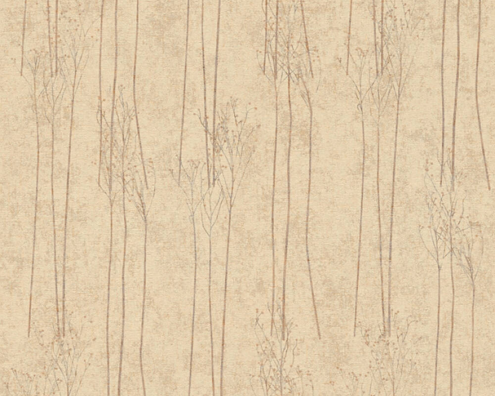 Tapeta z wzorem botanicznym, przedstawiającym filigranowe gałązki. Źdźbła gałązek są regularnie rozmieszczone na powierzchni całej tapety, a kolorystyka kolekcji zachowana w naturalnych kolorach ziemi. Ta wyjątkowa dekoracja roślinna ożywi mieszkanie i nada mu oryginalny styl. Kolekcja Hygge to nowoczesna i designerska propozycja do dekoracji pomieszczeń w skandynawskim stylu.