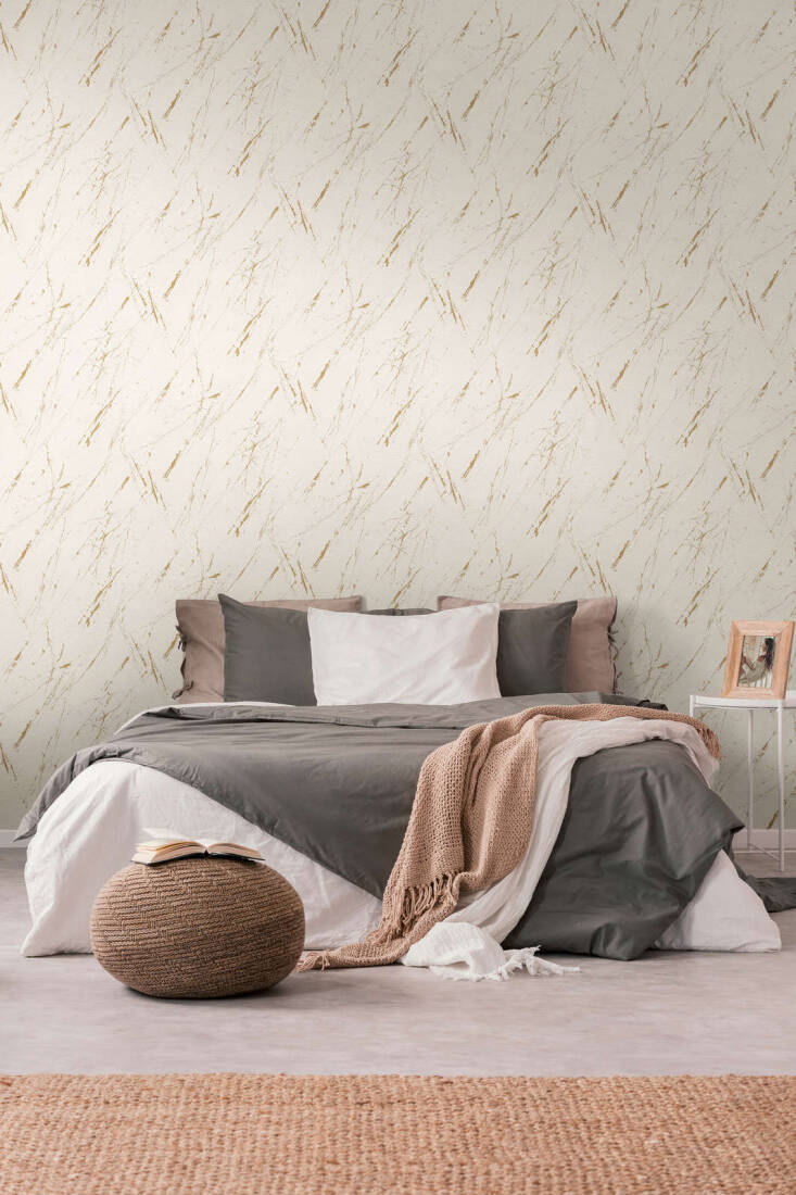 Tapeta 39336-4 z kolekcji Casual Living imitująca popękany marmur to dość oryginalne i funkcjonalne rozwiązanie na dekorację ścian. Dzięki wiernemu odwzorowaniu specyficznych nierówności faktury oraz charakterystycznych dla marmuru żyłek, ciężko odróżnić tapetę od prawdziwego kamienia. Ponadczasowy i atrakcyjny projekt, który swoją prostotą i eleganckim pięknem, zachwyci niejednego odbiorcę. Kolorystyka tapety jest zachowana w typowym dla kamienia odcieniu kremowego, o matowym wykończeniu. Znaczną uwagę przyciągają, rozmieszczone nieregularnie, wyjątkowe żyłki o subtelnym metaliczno-złotym połysku. Doskonale wpasuje się w wystrój wnętrza w każdym stylu aranżacyjnym, poczynając od nowoczesnego, przez rustykalny, skandynawski, eklektyczny, klasyczny po glamour. Sprawdzi się, jako samodzielna dekoracja ścian lub zestawiona z szeroką gamą wzorów z kolekcji Casual Living, stworzy wyjątkowy wystrój do salonu, jadalni, sypialni, gabinetu, pokoju młodzieżowego, nadając im niepowtarzalny i pełen energii charakter. Struktura tapety jest delikatnie tłoczona z lekko wyczuwalnym wklęśnięciem wzoru. Tapeta winylowa na flizelinie, charakteryzuje się bardzo dobrą odpornością na zmywanie, wierzch można przemywać wilgotną ściereczką.