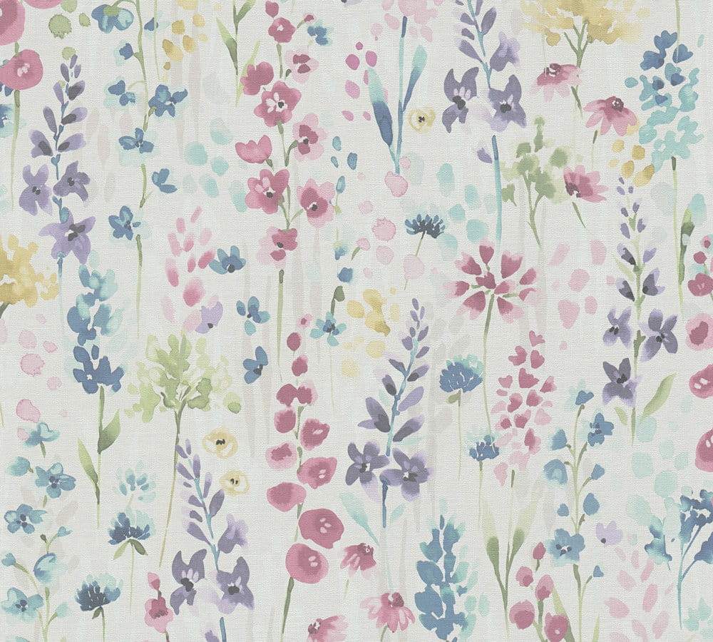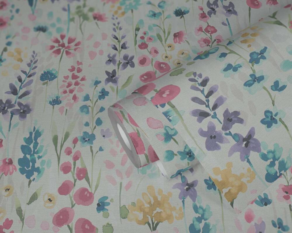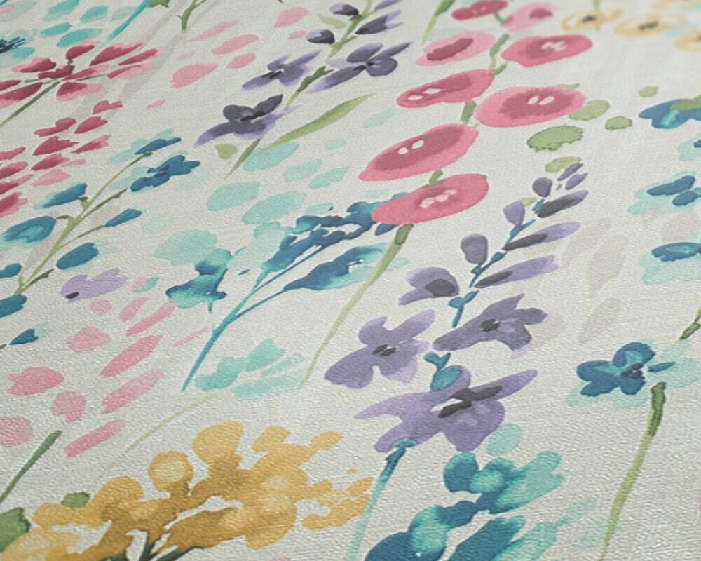 Prezentowaną tapetę ścienną z kolekcji "Aquarell Dreams" od marki A.S. Création wyróżnia delikatny, akwarelowy wzór roślinny, który idealnie sprawdzi się przy aranżacji przytulnego i nastrojowego wnętrza. Motyw składa się z lekkich, rozmytych kształtów, przypominających gałązki kwiatów i liści, które namalowano pędzlem. Kolorystyka tapety bazuje na nasyconych i pastelowych odcieniach różu, fioletu, niebieskiego, żółtego i zieleni, które harmonijnie współgrają z neutralnym, białym tłem. Struktura tapety wiernie imituje fakturę płótna malarskiego o szorstkiej fakturze i matowym wykończeniu. Dzięki temu efekt wizualny zostaje wzbogacony o subtelną głębię i sprawia, że tapeta prezentuje się niczym malarskie dzieło sztuki.