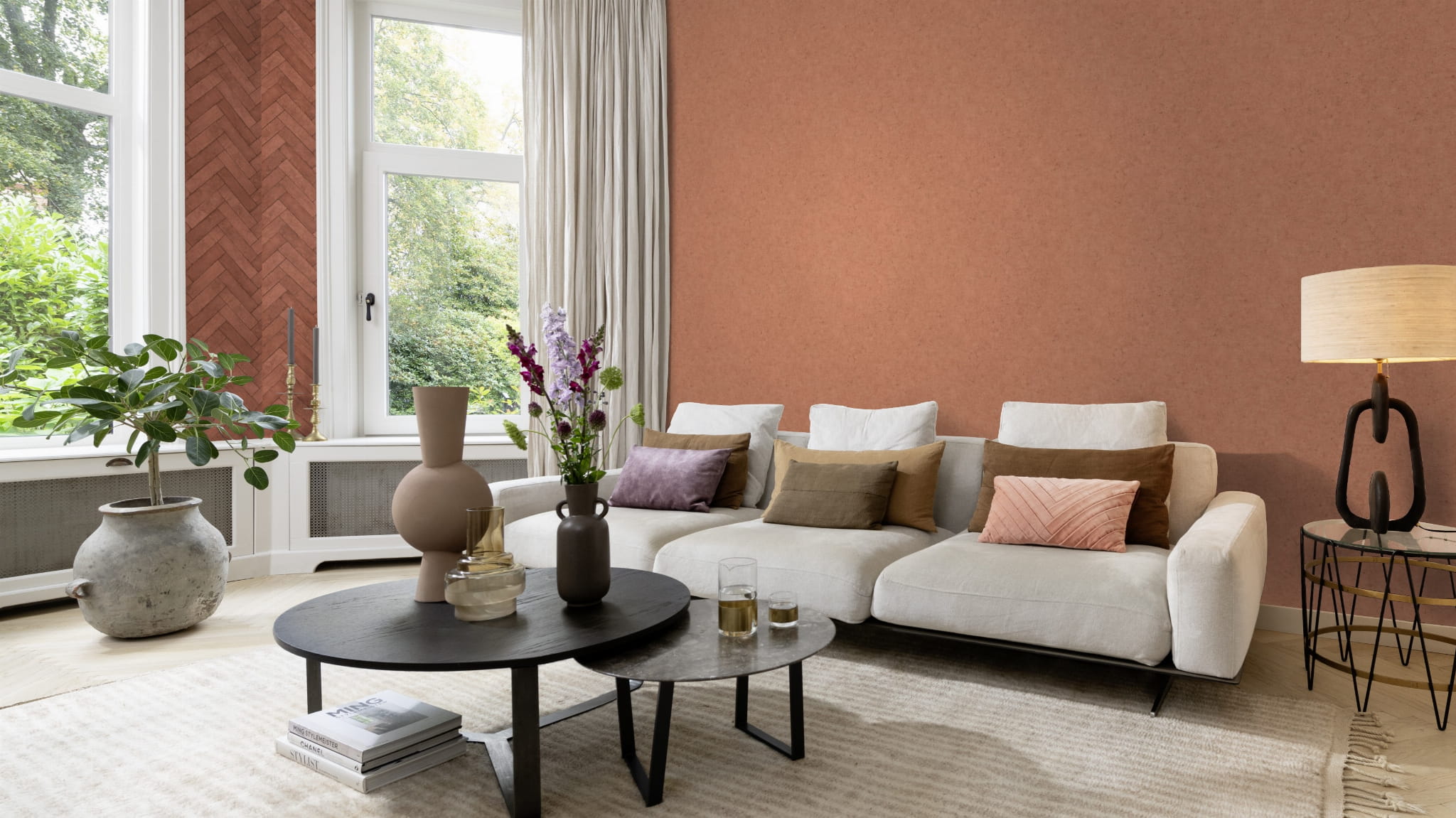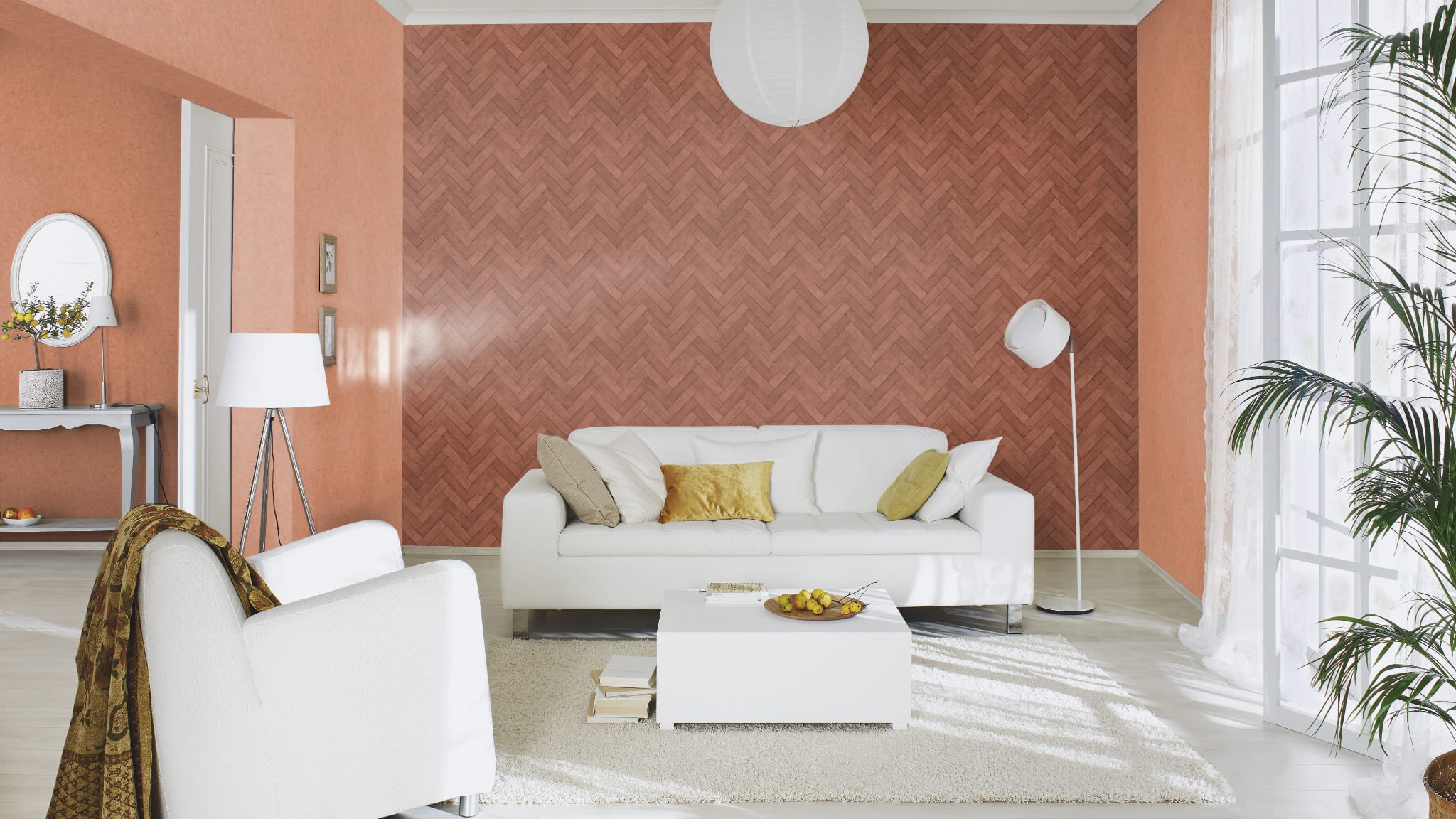 Kolorystyka tapety jest zachowana w odcieniu pomarańczowo-ceglastym. Struktura tapety jest twarda i niejednolita, w dotyku przypomina surowy beton. Sama może być doskonałą dekoracją lub uzupełnieniem większej aranżacji. Idealnie wpasuje się w wystrój salonu, jadalni, przedpokoju, sypialni czy gabinetu oraz bardziej minimalistach pomieszczeń, jak kuchnia i łazienka, nadając im niepowtarzalny klimat. Tapeta winylowa charakteryzuje się bardzo dobrą zmywalnością, wierzch można przemywać wilgotną ściereczką.