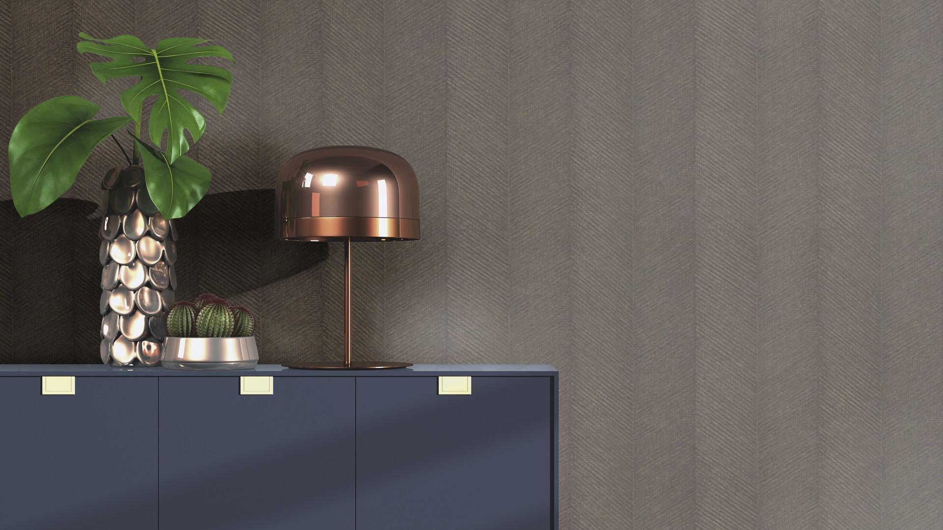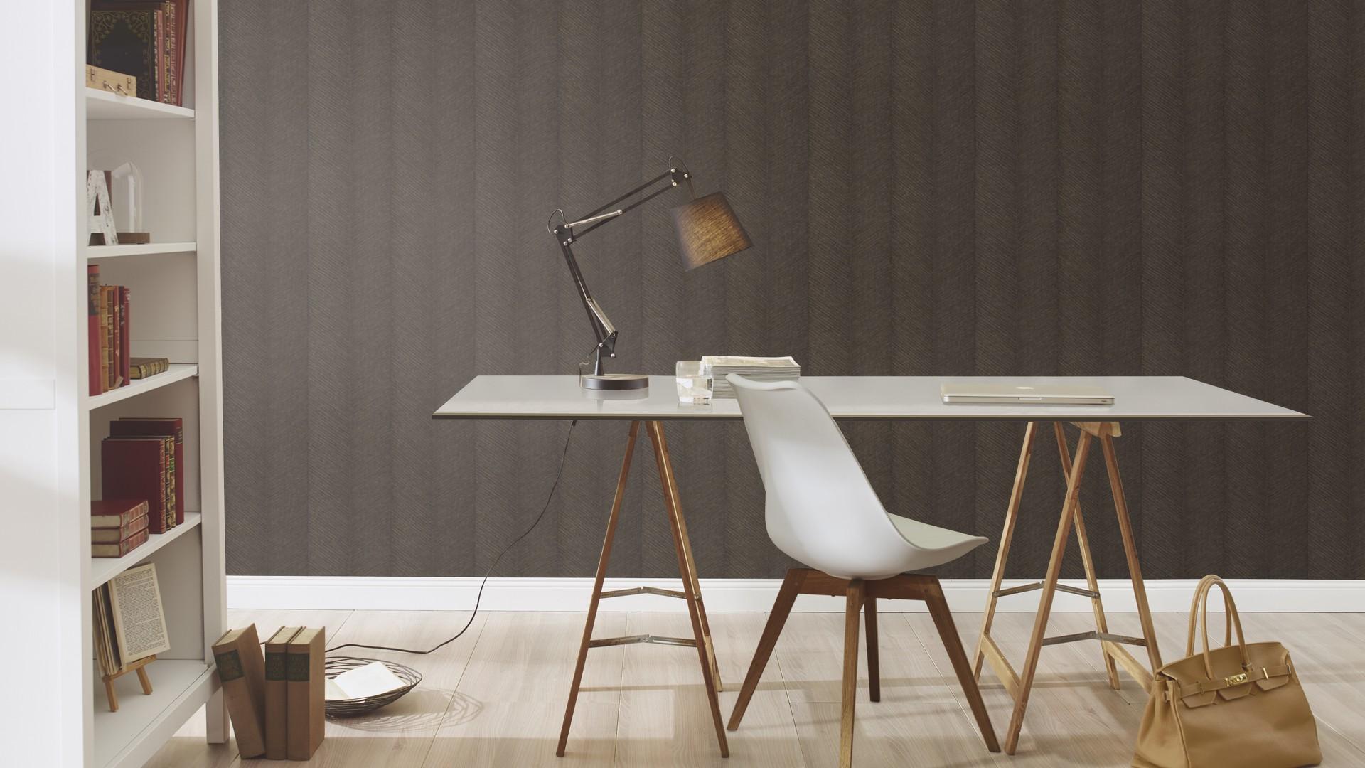 Tapeta ścienna z klasycznym wzorem jodełki, przedstawionej w formie szerokich, pionowych pasów. Kluczowa jest neutralna kolorystyka tapety, łącząca ciemny antracyt z szarym brązem i złotem o delikatnie błyszczącym, metalicznym wykończeniu. Kolory subtelnie przenikają się ze sobą, co tworzy stylowy efekt tekstury i głębi a metaliczny połysk koloru złotego dodaje całości wyszukanego stylu. Delikatnie tłoczona struktura tapety imituje tkaninę o delikatnym, prążkowanym splocie. Tapeta w jodełkę, znana ze swej uniwersalności świetnie odnajdzie się w różnych stylach wnętrzarskich. Doskonale pasuje, zarówno do nowoczesnych i minimalistycznych aranżacji, jak i bardziej klasycznych wnętrz. Gwarantuje przytulny i elegancki styl salonu, jadalni, sypialni, przedpokoju, czy też biura. Tapeta, ze względu na ciemną kolorystykę świetnie sprawdzi się w postaci akcentu, na przykład jako dekoracja na jednej ścianie, tworząc stylowe zestawienie z innymi tapetami z kolekcji, na przykład tymi, prezentowanymi poniżej. Prezentowana tapeta jest tapetą flizelinową, zmywalną w bardzo dobrym stopniu, dzięki czemu łatwą do utrzymania w czystości. Produkt pochodzi z ekskluzywnej kolekcji „Amara”, niemieckiego producenta Rasch.