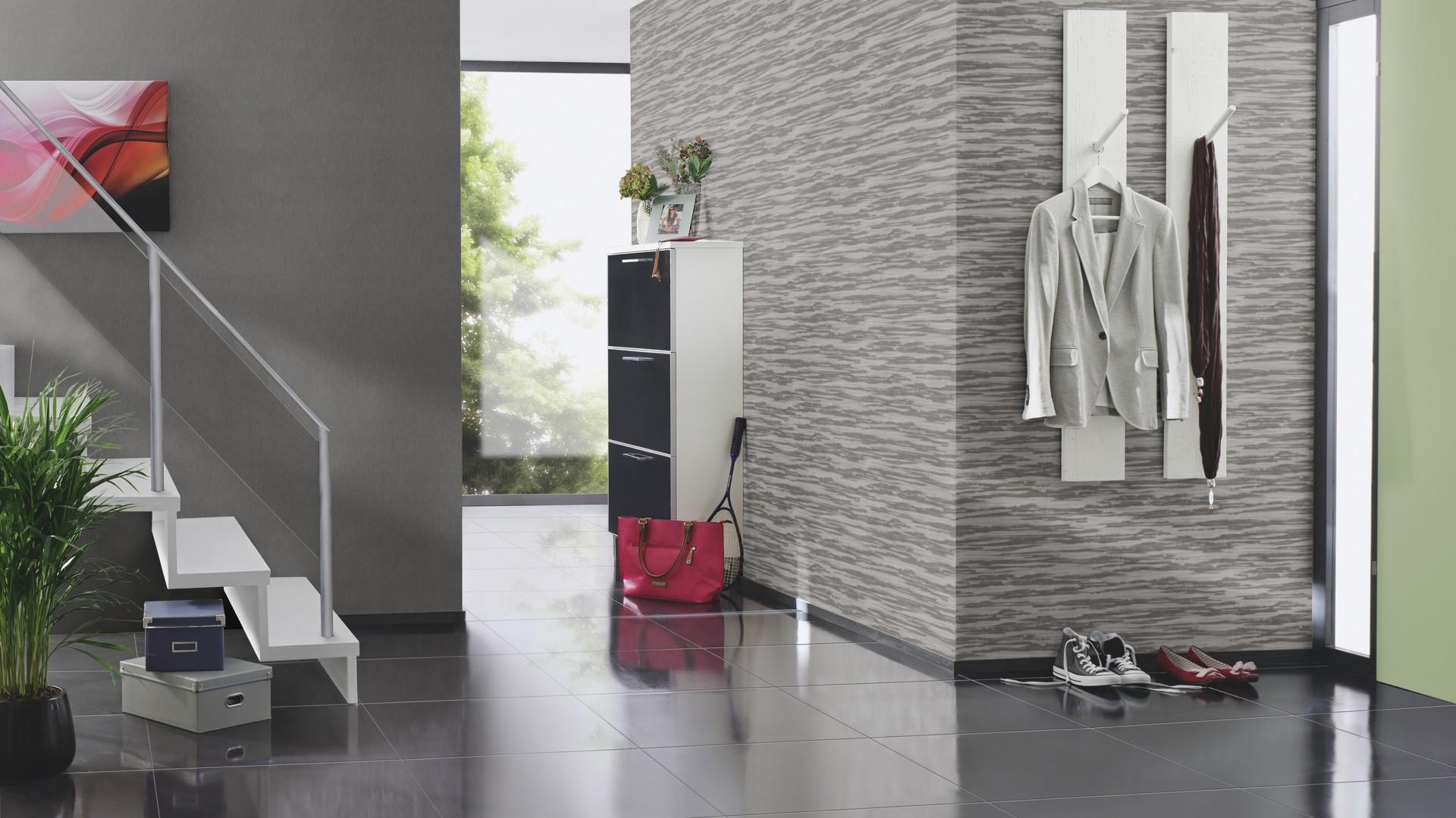 Ta nowoczesna tapeta ścienna zachwyca swym oryginalnym, abstrakcyjnym wzorem, który przypomina delikatne pociągnięcia pędzla. Wzór poziomych linii sprawia wrażenie przestrzenności, dodaje głębi ścianom i tworzy wizualnie bardzo stylowy efekt. Kompozycja w delikatnym odcieniu jasnej szarości, zestawionej z czernią gwarantuje przytulny i spokojny klimat wnętrza. Powierzchnię tapety zdobią delikatnie metalizowane, srebrne prążki utworzone z drobnych kropek, co dodaje całości wyjątkowego charakteru. Struktura tapety imituje tkaninę o delikatnym, prążkowanym splocie, co podkreśla przytulny charakter dekoracji. Projekt świetnie wpisuje się w nowoczesne, minimalistyczne, industrialne i skandynawskie aranżacje wnętrz. Idealny do salonu, jadalni, sypialni, przedpokoju, czy też biura i wszędzie tam gdzie nowoczesność łączy się z elegancją. Zastosowanie tapety jako dekoracji jednej ściany i zestawienie jej z tapetami, które prezentujemy poniżej pozwoli uzyskać spójny i harmonijny wystrój. Prezentowana tapeta jest tapetą flizelinową, zmywalną w bardzo dobrym stopniu, dzięki czemu łatwą do utrzymania w czystości. Produkt pochodzi z ekskluzywnej kolekcji „Amara”, niemieckiego producenta Rasch.