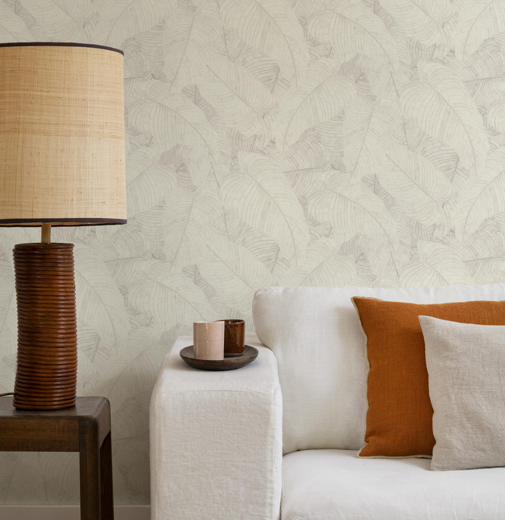 Powyższa tapeta o unikalnym, egzotycznym wzorze to idealny przepis na stworzenie klimatycznej aranżacji wnętrza. Stylizowany motyw dużych liści bananowca, utrzymany w delikatnym odcieniu jasnej szarości, zestawionej z bielą prezentuje się bardzo przytulnie i elegancko, tworzy atmosferę spokoju i harmonii. Wyraziste detale faktury dodają tapecie głębi a subtelny, metaliczny połysk białych elementów wzoru tworzy piękne refleksy na ścianie. Tekstylna, prążkowana struktura tapety podkreśla naturalny styl kompozycji. Tapeta doskonale sprawdzi się w salonie, sypialni, biurze, czy przestrzeniach komercyjnych. Wpasuje się zarówno do nowoczesnych, jak i bardziej klasycznych aranżacji. Może stanowić główny element dekoracyjny wnętrza, lub być tłem dla innych elementów wyposażenia. Zestawienie jej meblami i dodatkami w neutralnych kolorach, pomoże stworzyć spójną harmonijną przestrzeń. Prezentowana tapeta jest tapetą flizelinową, zmywalną w bardzo dobrym stopniu, dzięki czemu łatwą do utrzymania w czystości. Produkt pochodzi z ekskluzywnej kolekcji „Amara”, niemieckiego producenta Rasch.