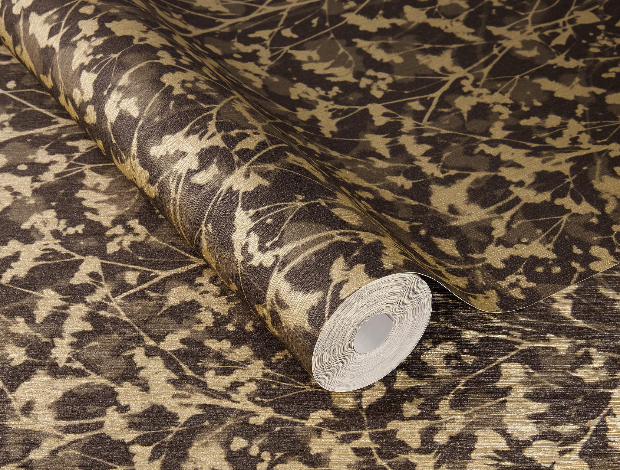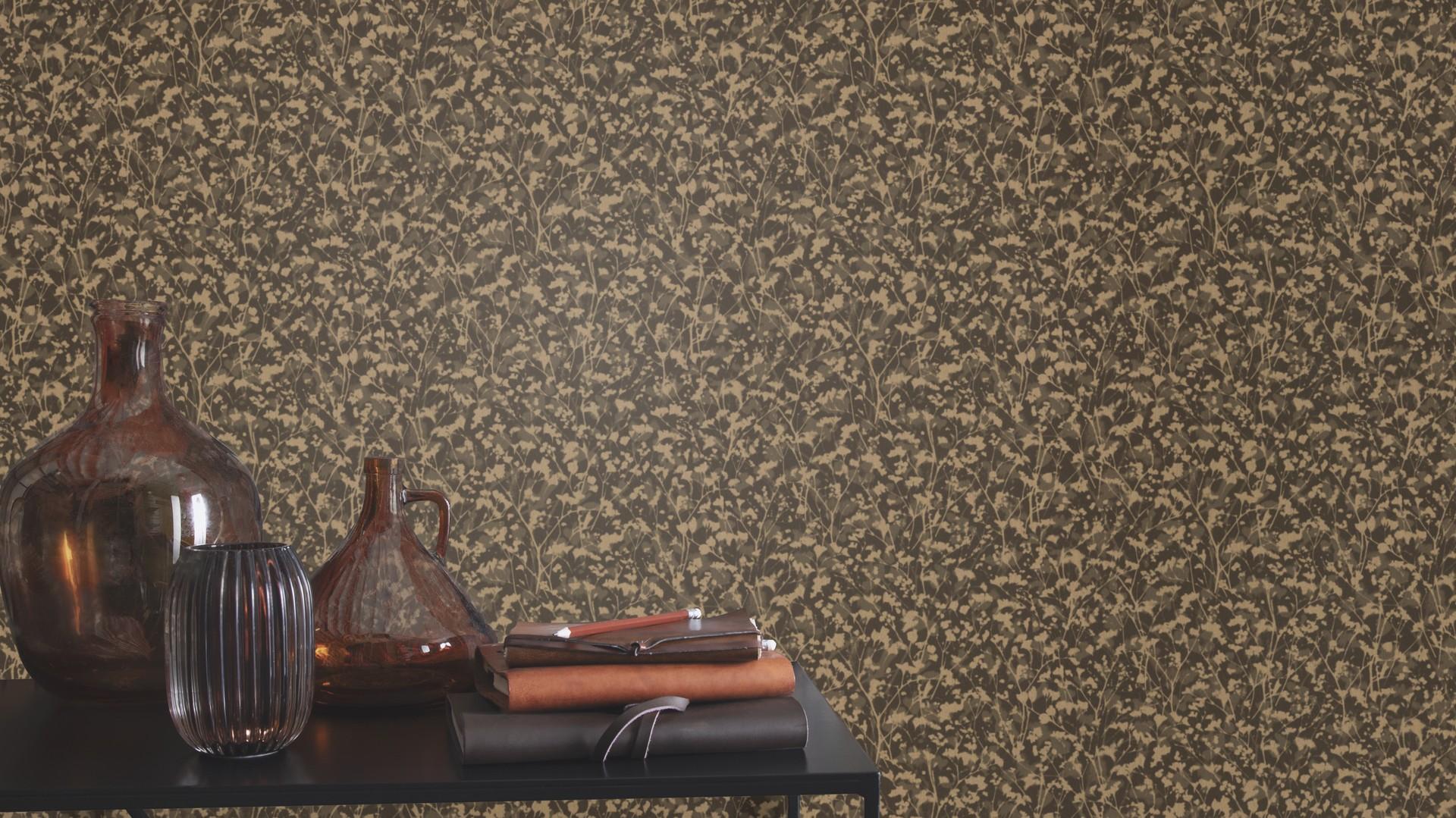 Powyższa tapeta ścienna zachwyca subtelnym, roślinnym wzorem w eleganckiej palecie barw. Delikatne, organiczne kształty przypominające ulistnione gałązki gwarantuje stylowe wnętrze o eleganckim charakterze i wyjątkowo przytulnym klimacie. Ciemne, czarne tło pięknie kontrastuje z elementami wzoru w odcieniu złota i szarości. Subtelny, metaliczny połysk złotych elementów wzoru sprawia, że tapeta pięknie błyszczy pod wpływem padania światła, co dodaje ścianom głębi i tworzy wizualnie bardzo ciekawy efekt. Struktura tapety imituje tkaninę o delikatnym, prążkowanym splocie, co podkreśla przytulny styl kompozycji. Tapeta doskonale sprawdzi się zarówno w nowoczesnych, jak i klasycznych wnętrzach. Doskonale sprawdzi się jako dekoracja na jednej ścianie w salonie, jadalni, czy też sypialni. Może stanowić główny element dekoracyjny, lub być tłem dla mebli i dodatków. Prezentowana tapeta jest tapetą flizelinową, zmywalną w bardzo dobrym stopniu, dzięki czemu łatwą do utrzymania w czystości. Produkt pochodzi z ekskluzywnej kolekcji „Amara”, niemieckiego producenta Rasch.