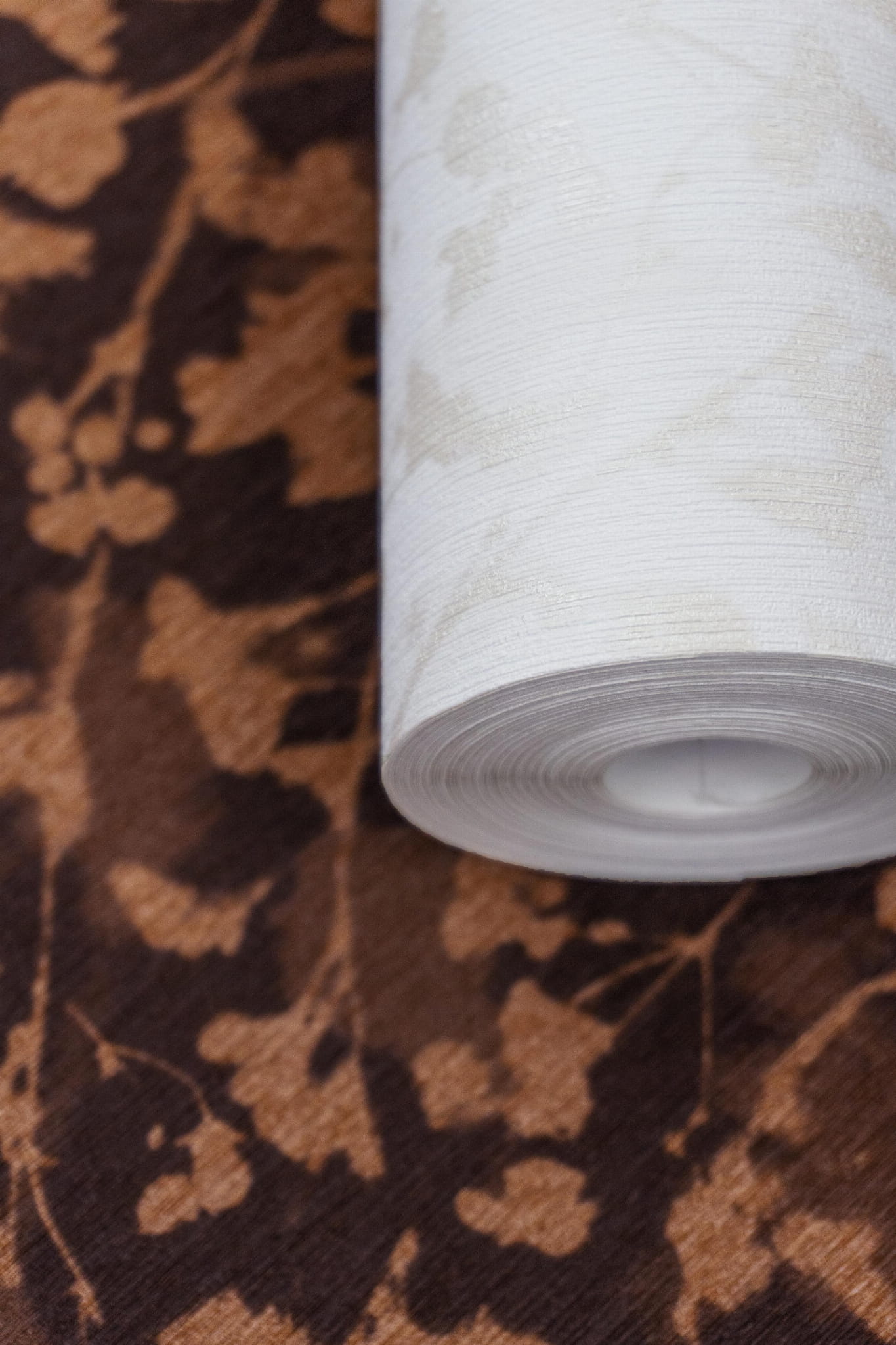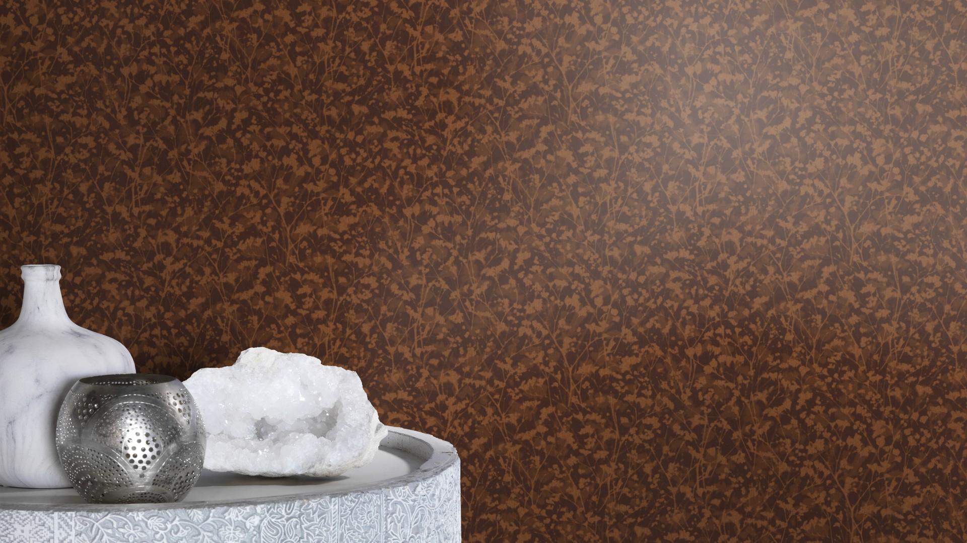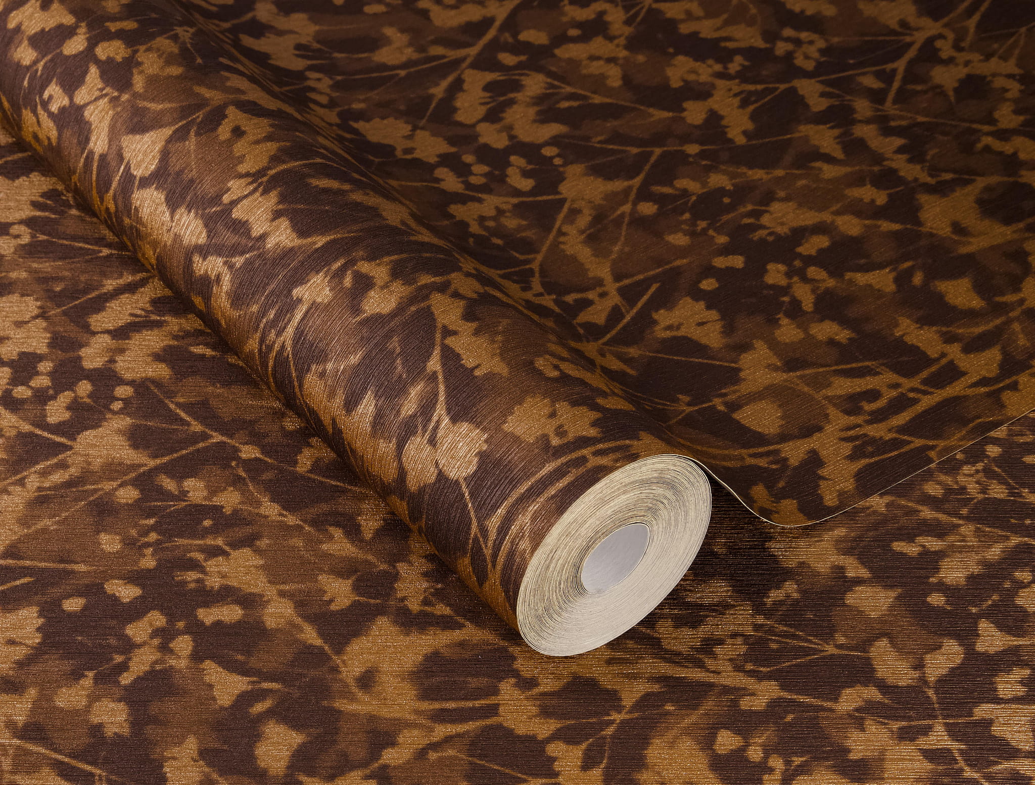 Powyższa tapeta ścienna zachwyca subtelnym, roślinnym wzorem w eleganckiej palecie barw. Delikatne, organiczne kształty przypominające ulistnione gałązki gwarantuje stylowe wnętrze o eleganckim charakterze i wyjątkowo przytulnym klimacie. Ciemne, brązowe tło pięknie kontrastuje z jaśniejszymi elementami w brązowo-miedzianych tonacjach. Subtelny, metaliczny połysk jaśniejszych elementów wzoru sprawia, że tapeta pięknie błyszczy pod wpływem padania światła, co dodaje ścianom głębi i tworzy wizualnie bardzo ciekawy efekt. Struktura tapety imituje tkaninę o delikatnym, prążkowanym splocie, co podkreśla przytulny styl kompozycji. Tapeta doskonale sprawdzi się zarówno w nowoczesnych, jak i klasycznych wnętrzach. Świetnie sprawdzi się jako dekoracja na jednej ścianie w salonie, jadalni, czy też sypialni. Zestawienie jej z tapetami, które prezentujemy poniżej pozwoli uzyskać spójną i harmonijną aranżację. Może stanowić główny element dekoracyjny, lub być tłem dla mebli i dodatków. Prezentowana tapeta jest tapetą flizelinową, zmywalną w bardzo dobrym stopniu, dzięki czemu łatwą do utrzymania w czystości. Produkt pochodzi z ekskluzywnej kolekcji „Amara”, niemieckiego producenta Rasch.