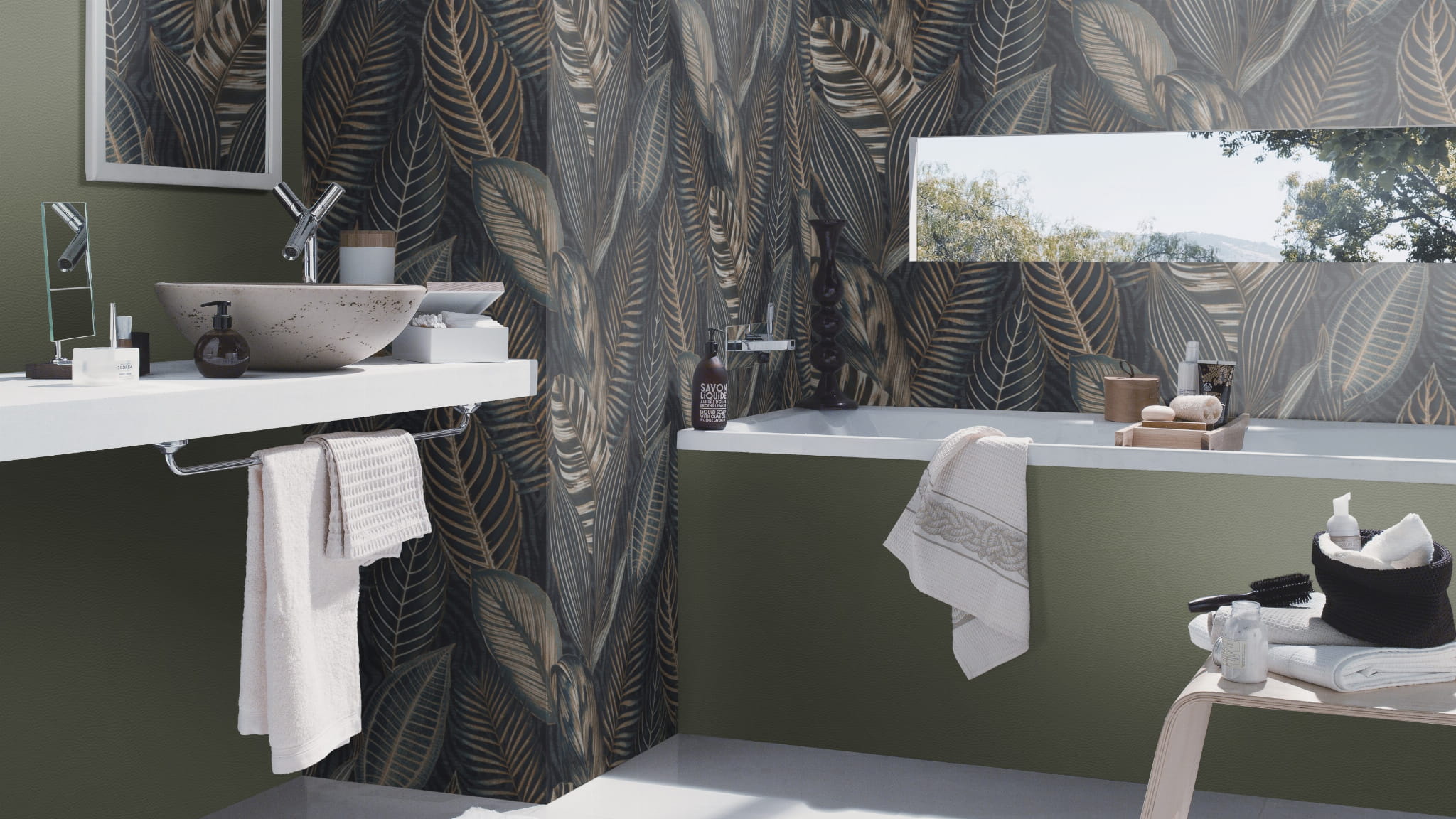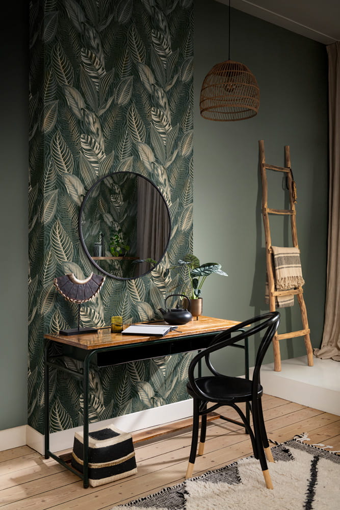 Powierzchnia tapety jest matowa w kolorze zielonym.