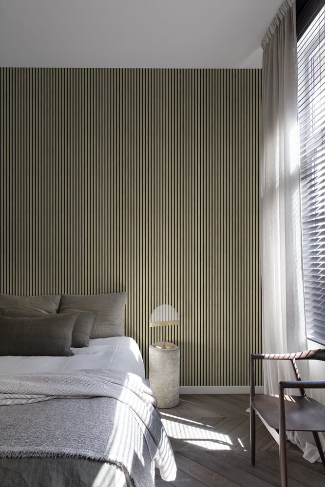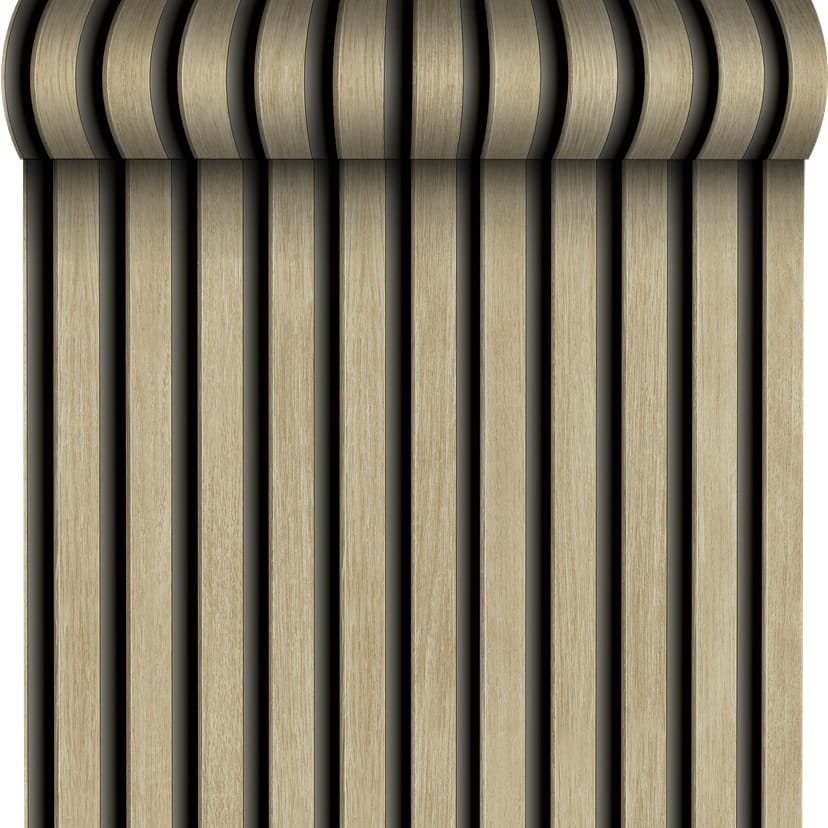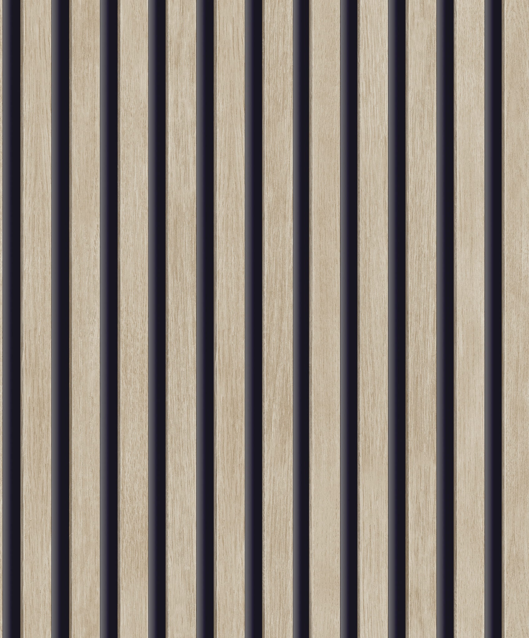Prezentowana tapeta ścienna wiernie odwzorowuje wygląd drewnianych lameli, tworząc efekt trójwymiarowości i głębi na ścianie. Jej wzór składa się z pionowych, prostych pasów, które idealnie oddają naturalną strukturę drewna. Jasne lamele w odcieniu beżu kontrastują z ciemnym tłem, co tworzy efekt głębi i dynamiki na ścianie. Czarne cienie między lamelami dodają realizmu i podkreślają efekt przestrzenny. Struktura tapety jest bardzo delikatnie tłoczona, niemalże idealnie gładka i wyczuwalnie szorstka w dotyku, wykończenie powierzchni jest matowe. Tapeta imitująca lamele to idealne rozwiązanie dla osób ceniących sobie styl, prostotę i przytulność w aranżacji przestrzeni. Doskonale wpasuje się do wnętrz nowoczesnych, industrialnych, skandynawskich, loftowych, czy na przykład rustykalnych. Idealnie pasuje do salonu, jadalni, sypialni, przedpokoju, czy też biura. Dobrze sprawdzi się jako dekoracja jednej ściany, lub na jej wybranym fragmencie.