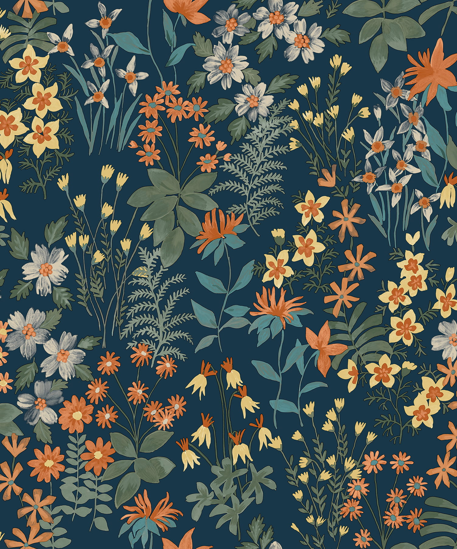 Prezentowana tapeta ścienna z kolekcji "Arcadia", od Grandeco jest doskonałym wyborem dla osób ceniących klasyczną elegancję oraz romantyczne, nastrojowe wnętrza. Jej botaniczny wzór przypomina bogate, bujne ogrody pełne różnorodnych roślin, gdzie kwiaty i liście subtelnie się przeplatają, wprowadzając do wnętrza ciepły i odprężający klimat. Głęboki, granatowy kolor tła kontrastuje z wyrazistymi wzorami kwiatowymi w odcieniach pomarańczowego, żółci, kremu, szarej zieleni i szaro-niebieskiego, co tworzy dynamiczny, wielowymiarowy efekt. Struktura tapety jest gładka, lekko ziarnista w dotyku a wykończenie powierzchni matowe.