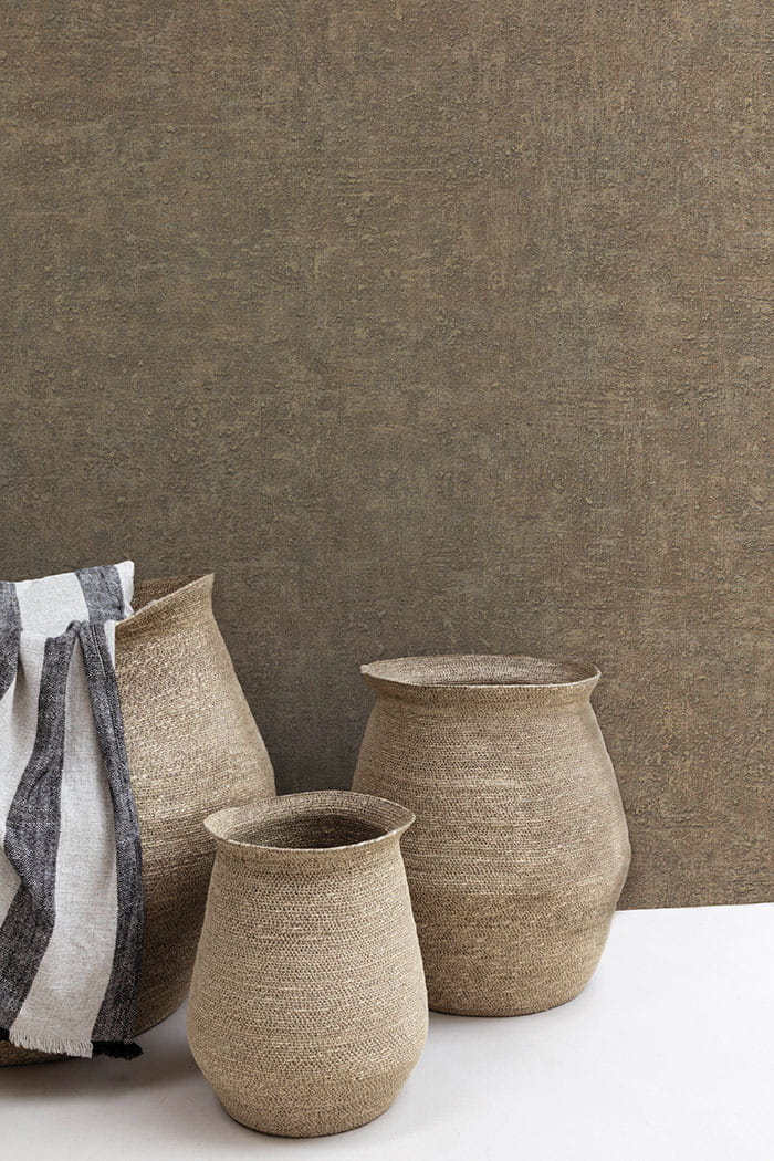 Ekskluzywna tapeta ścienna z kolekcji „Belize”, producenta Grandeco. Tapeta o delikatnie tłoczonej i wyczuwalnie chropowatej w dotyku strukturze, utrzymana w ciepłej, ciemnobrązowej kolorystyce. Wyglądem przypomina kamienną powierzchnię z delikatnie połyskującą, metalizowaną przecierką w kolorze srebrnym. Z powodzeniem może stanowić samodzielną dekorację w całym pomieszczeniu, lub tworzyć modne zestawienie z innymi tapetami z kolekcji, na przykład tymi, prezentowanymi poniżej. Stanowi naturalną, przytulną i elegancką dekoracje, która nadaje się do każdego pomieszczenia, i która będzie współgrać z wieloma stylami aranżacji wnętrz. Podłoże tapety winylowe na flizelinie, zmywalne – odporne na szorowanie, dzięki czemu tapetę łatwo będzie utrzymać w czystości.