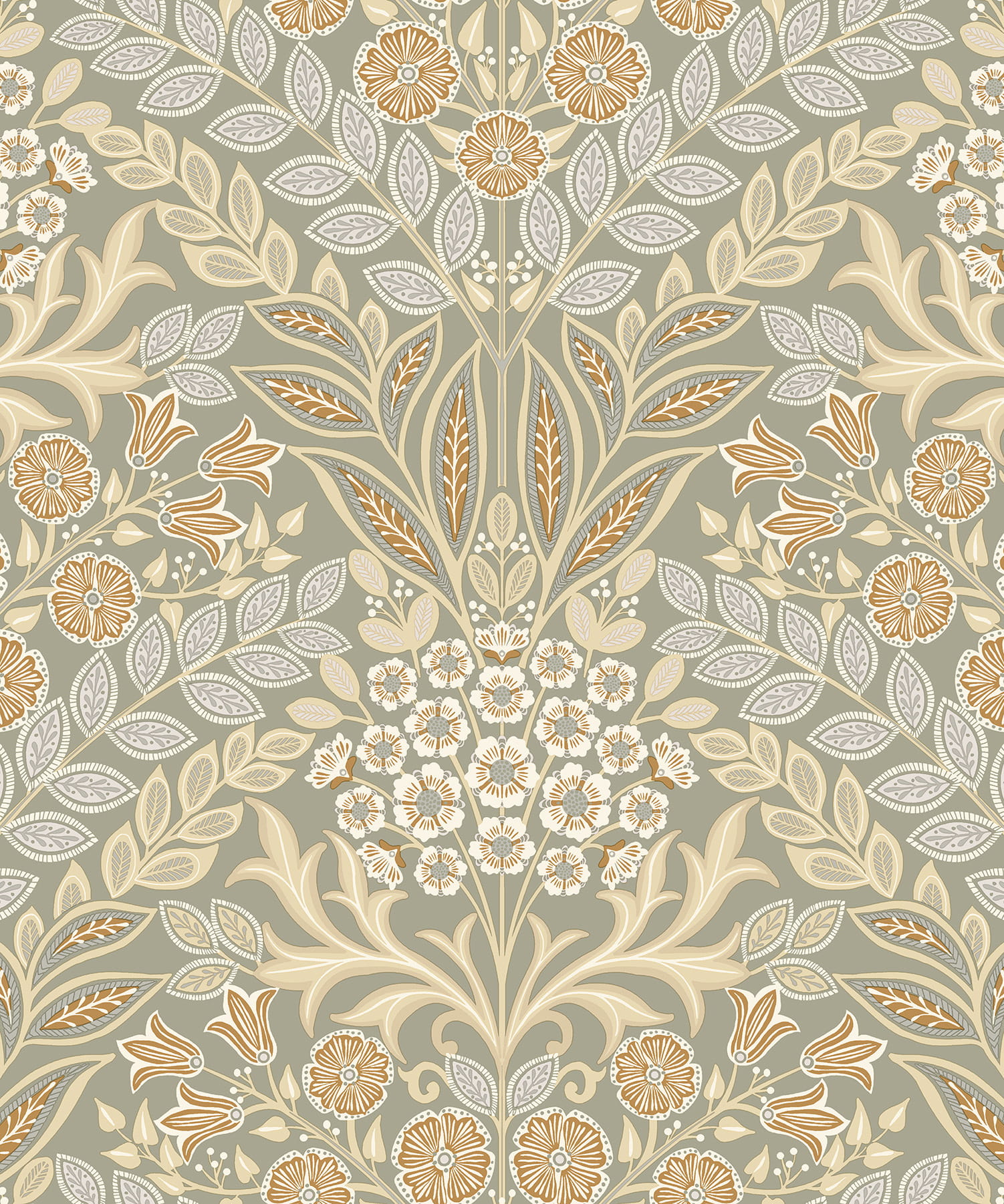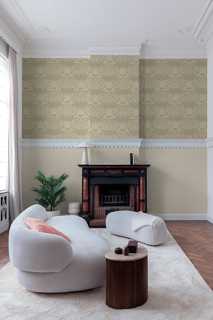 Prezentowana tapeta ścienna o numerze IC2102 charakteryzuje się pięknym, stylizowanym wzorem roślinnym, inspirowanym motywami kwiatów i liści. Kompozycja zachwyca bogactwem detali, precyzją wzoru, który nadaje tapecie elegancki i stylowy charakter. Pastelowa kolorystyka sprawia, że całość ma spokojny i przytulny charakter. Delikatny odcień ciemnej szarości lekko wpadającej w zieleń stanowi bazę a wzór jest utrzymany w tonacji ciepłego beżu i brązu, oraz bieli i szarości. Struktura tapety jest gładka, lekko ziarnista a wykończenie matowe. Swym stylem tapeta doskonale wpasuje się w aranżacje, zarówno o charakterze nowoczesnym, jak i klasycznym. Świetnie pasuje się do wnętrz urządzonych w stylu romantycznym, vintage, czy boho. Pięknie udekoruje salon, jadalnię, sypialnię, czy też duży przedpokój, nadając każdemu pomieszczeniu wyjątkowego stylu oraz przytulnej i spokojnej atmosfery. Zastosowanie tapety jako dekoracji jednej ściany i zestawienie jej z tapetami jednokolorowymi, które prezentujemy poniżej pozwoli uzyskać spójny i modny wystrój wnętrza. Tapeta pochodzi z kolekcji „Icon”, belgijskiego producenta Grandeco. Podłoże tapety winylowe na flizelinie, odporne na szorowanie.