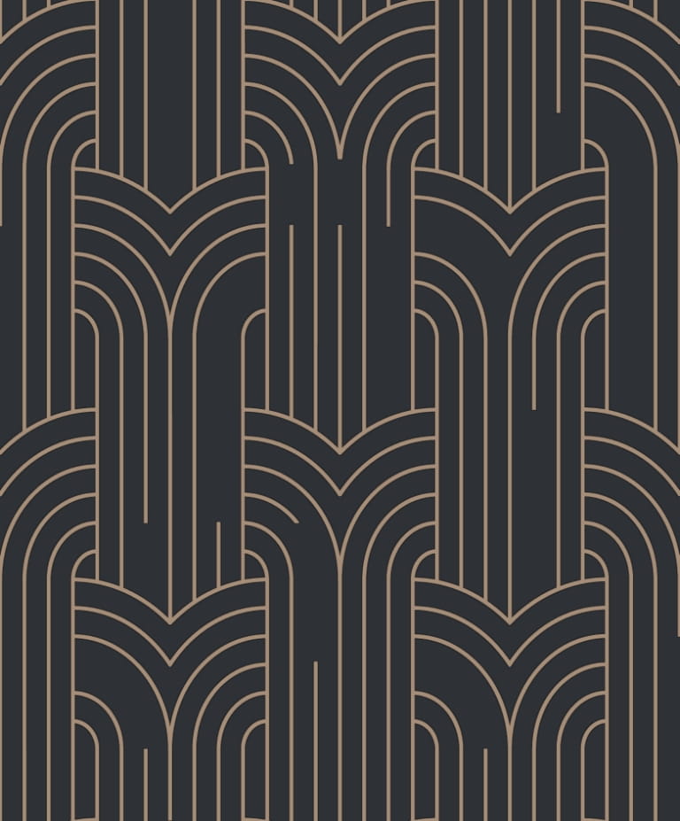 Tapeta z geometrycznym i nowoczesnym motywem, przedstawiającym linie, które tworzą wyjątkowy graficzny wzór w łuki, na kształt dużej i okazałej plecionki. Wszystko utrzymane w stonowanej i jednolitej, czarnej kolorystyce, o subtelnie chropowatej powierzchni. Matowe wykończenie sprawi, że pomieszczenie stanie się dyskretne i przytulne. Wklęsłe elementy wzoru, o metaliczno-złotym połysku, zestawione z odpowiednio ustawionym oświetleniem, będą wspaniale się mienić, dodając tapecie elegancji i blasku, tworząc w całej aranżacji niesamowity efekt.