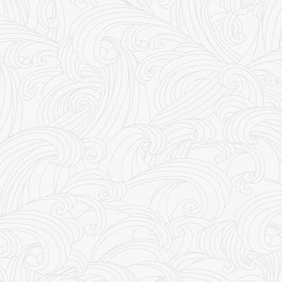 Cały motyw gęsto wypełnia powierzchnię tapety, która jest miękka w dotyku i minimalnie chropowata o matowym wykończeniu. Kontury fal są wklęsłe w odcieniu metalicznym perłowym. Pozostała, wypukła część wzoru, jest zachowana w jednolitej kolorystyce - wełnianej bieli.
