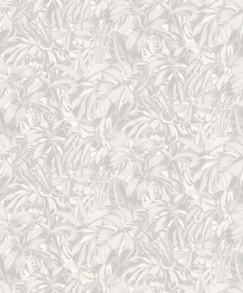 Tapeta z tropikalnym motywem botanicznym to zdecydowanie idealny przepis na stworzenie klimatu dżungli w swoich czterech kątach. Kolaż różnorodnych liści palmowych, utrzymany w delikatnych odcieniach szarości i bieli gwarantuje przytulną i odprężająco atmosferę w pomieszczeniu. Idealnie skomponuje się z wystrojem nowoczesnego salonu, jadalni, sypialni, pokoju młodzieżowego, czy też przedpokoju. Niektóre, jaśniejsze elementy wzoru mają delikatny, srebrzysty połysk co zapewnia świetliste refleksy na ścianie i dodaje całości eleganckiego wyrazu. Struktura tapety jest gładka w dotyku. Aby uzyskać spójną i modną aranżację wnętrza, warto zastosować tapetę jako dekorację na jednej ścianie i dopasować do niej tapety, które prezentujemy poniżej. Tapeta pochodzi z ekskluzywnej kolekcji "Zen", belgijskiego producenta Khroma by Masureel. Jest tapetą winylową na podłożu flizelinowym, zmywalną w stopniu dobrym.