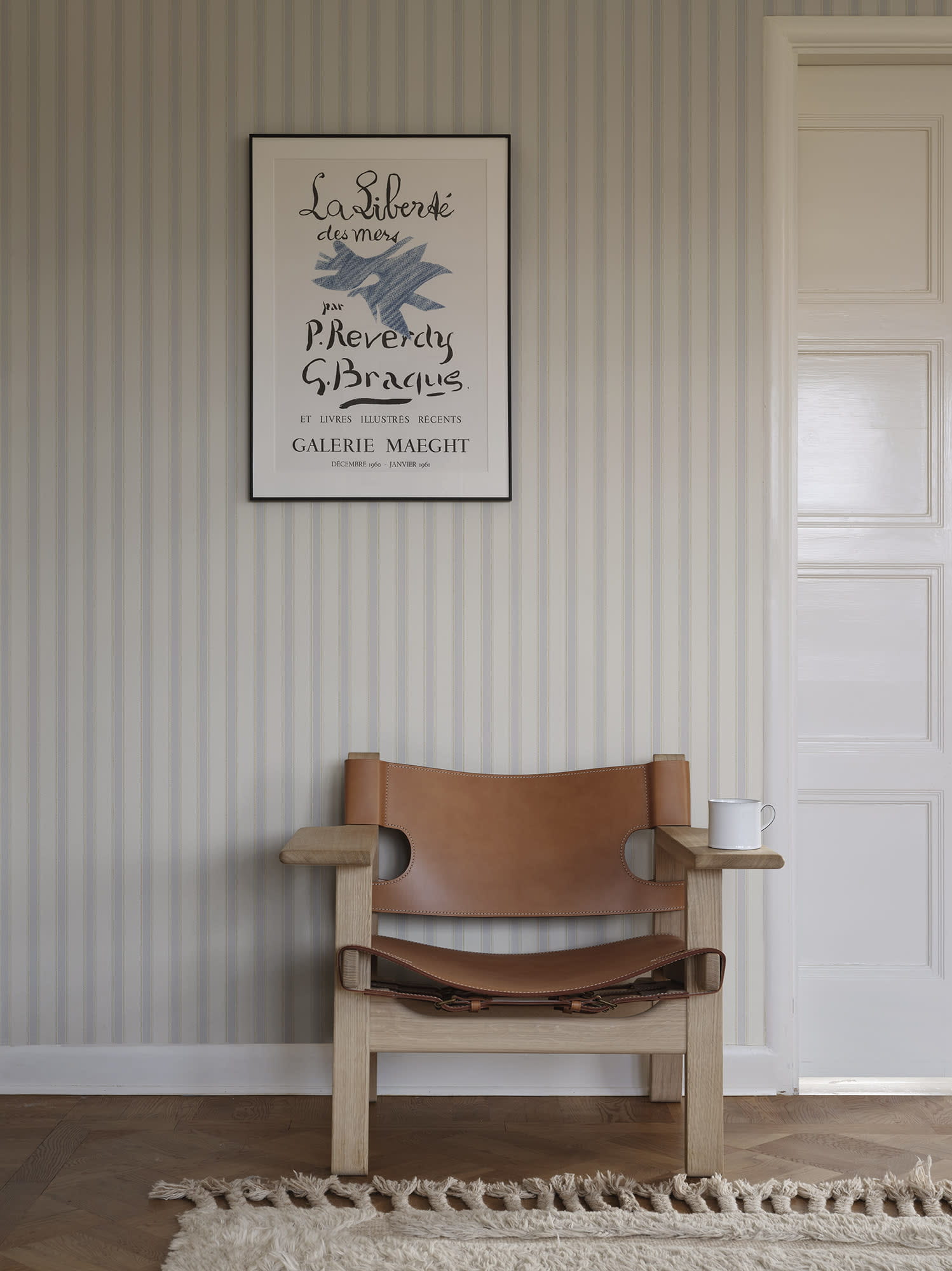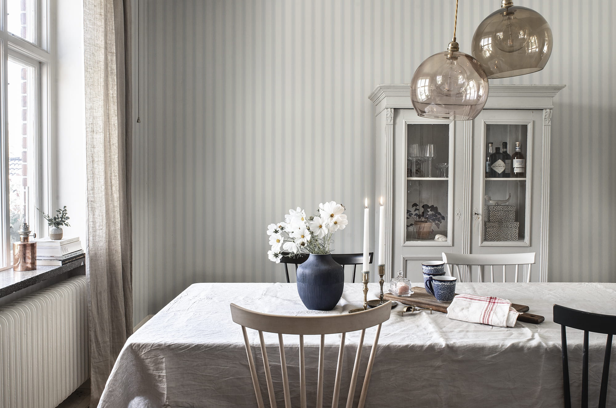 Tapeta z kolekcji „Tidlosa”, producenta Sandberg łączy klasykę, prostotę i elegancję ponadczasowego wzoru pasów. Nienachlana kolorystyka tapety, będąca zestawieniem bieli z bladym, chłodnym błękitem sprawia, że całość prezentuje się stylowo ale i przytulnie. Wyszukanego stylu dodają drobniutkie, złote kropki poprowadzone wzdłuż pasków, które delikatnie mienią się w świetle. Struktura tapety jest idealnie gładka w dotyku. Pasiasty projekt „Gustav” jest inspirowany pięknymi, jedwabnymi zasłonami i tkaninami meblowymi z XVIII wieku. Uniwersalny motyw będzie stylowym dopełnieniem zarówno klasycznej, jak i bardziej nowoczesnej aranżacji wnętrza. Pięknie udekoruje salon, jadalnię, sypialnię, przedpokój, gabinet, czy też pokój młodzieżowy, nadając wnętrzom wyjątkowego charakteru. Tapeta może stanowić samodzielną dekorację całego pomieszczenia lub tworzyć modne zestawienie z innymi tapetami z kolekcji. Tapeta flizelinowa, charakteryzująca się dobrą odpornością na zmywanie, dzięki czemu jej powierzchnię można bardzo delikatnie przecierać ściereczką.